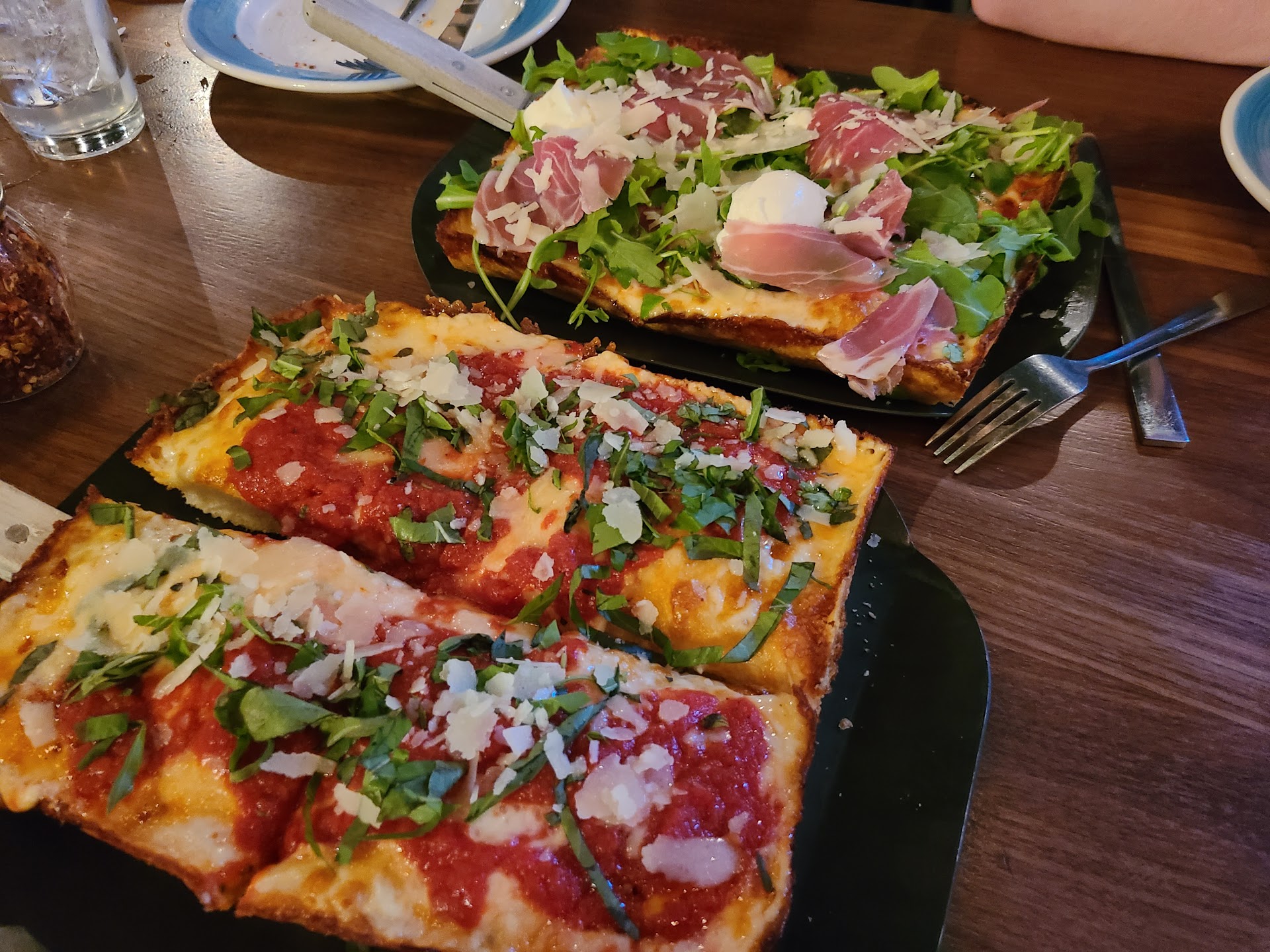 Read moreWe’ve been attempting to enjoy Blue Pan since it first opened years ago. We live within walking. We’ve given it dozens of tries, pre-pandemic, pandemic, post-pandemic. Tonight was maybe the 5th time that we dined in and our food took so long we had to get it to go. We first waited 45 min for a table (at 545pm), I ordered breadsticks from the bar for my 4 year old who was hangry, and they took over 45 min to come (we were seated by then). We ordered one Detroit style pizza and one cheese NY style for our young kids the moment we were seated, and they still took 80 min to come out. This is COMMON here. The food is very good but can rarely be enjoyed while in a good mood, as it takes eons to arrive. You end up throwing away money on drinks because the gig is to make you wait so long you have no choice. We didn’t see any pizzas served in the restaurant while we waited, but they flew out the door for pick up orders. When the pizza came it was so late I had to ask for boxes and I complained about how often this has happened to us. The server said she would make it right then completely disappeared to leave the hostess to fumble through our check. $133 for a few drinks, a very delayed appetizer, and two pizzas we had to get to go. Finally leaving a review as we’ve given Blue Pan ample opportunity to get it right and the only thing that’s good is the food, which isn’t worth it when you consistently wait hours and overpay for it. There are so many other good pizza places in the neighborhood that are worth your time (and value it!)....