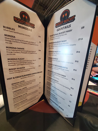Read moreThe Boozy Biscuit and The Urban Sombrero share the same building, and although we eat at The Urban Sombrero once a month because we love it, this was our first time eating at The Boozy Biscuit. It surpassed our expectations! Four of us shared the stuffed French toast, as an "appetizer" and it whetted our whistle for more! The French toast was light and fluffy with a hint of citrus and we could have licked the platter clean. I ordered the Southwest Skillet which was loaded with delicious home-style potatoes, chorizo, jalapenos, onions, tomatoes, peppers, and cheese, and topped with two eggs. It came in a sizzling skillet ensuring the food stayed hot for a long time. The portion was huge and I was only able to eat half of it, but I've saved the rest for breakfast tomorrow. I'd highly recommend it! My husband ordered the Sweet and Spicy Nashville Hot Chicken Biscuit, and he raved about how flavorful it was. Not too spicy, not too sweet with a spicy raspberry jam and pimento cheese sauce on it. The portion was huge, and he wasn't able to finish it either, so I won't have to cook for another week. The menu at The Boozy Biscuit is as big as their portions and we're going to have fun working our way through each of the entrees from shrimp and grits to chicken and waffles. There's something for everyone. They have a full line of adult beverages, too, from Bloody Marys to a Boozy Mimosa with a shot of Grey Goose. The coffee is top-notch, too. All-in-all, this is a great place for brunch....