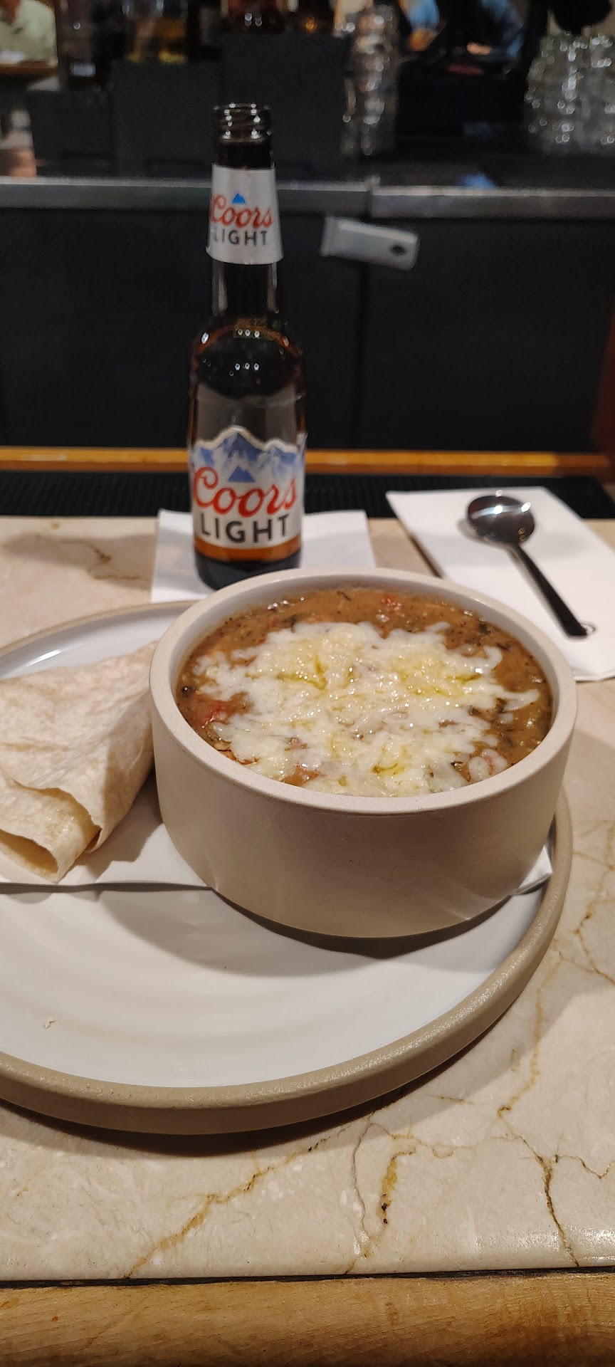Very friendly, food and service was amazing.. River the bartender / manager was super friendly, . Although I stayed at the Holiday Inn their bar closes at 7:00pm & Characters closes at midnight . I Highly recommended if your staying in this area & super friendly. The pork hatch chili is not your "typical" chili but Amazing ( spicy ) and delicious. A Denver Staple.