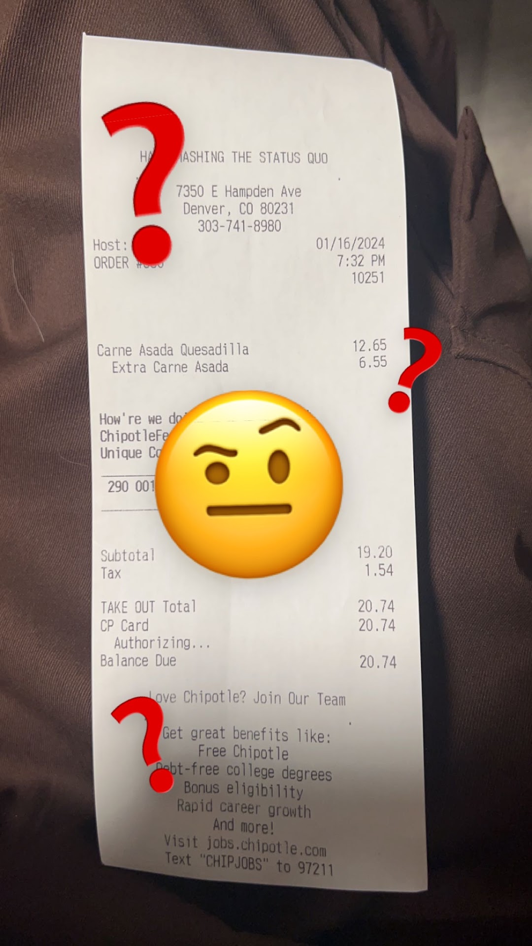 I went into chipotle on a Friday to eat with my family. At 7:45 pm they had already shut down the restrooms. My 3 yo son needed to pee and was refused. We spoke to the GM and she acted like there was some technical reason they could not reopen the restroom for one small child to pee aside from laziness from her own staff. I was in the service industry for 18 years. The GM sets the tone for the staff. The entire staff was rude and lazy. Who shuts down the restroom at the tail end of a dinner rush? We were forced to leave. In other words, we had to leave a restaurant to eat at home because the staff was too lazy to take 2 mins to create restroom accommodations for a 3 yo. The food was slop and not fresh, I assume because the staff could not be bothered to cook fresh food. I bet food safety standards were not met. If they can’t cook fresh food, I promise they’re not checking temps on the line. I filed a complaint with corporate and they did nothing to make it right. Chipotle used to be my favorite place to eat. Lately every location has gone downhill, but this has by far been the worst. I will not be back and I will spread the word far and wide. The chipotle on Hampden is a dump and the entire staff sucks except for ONE guy. Zero stars. Would not recommend. I wish I had two more hands so that I could give this dining experience 4 thumbs down. If I could rate it at absolute...