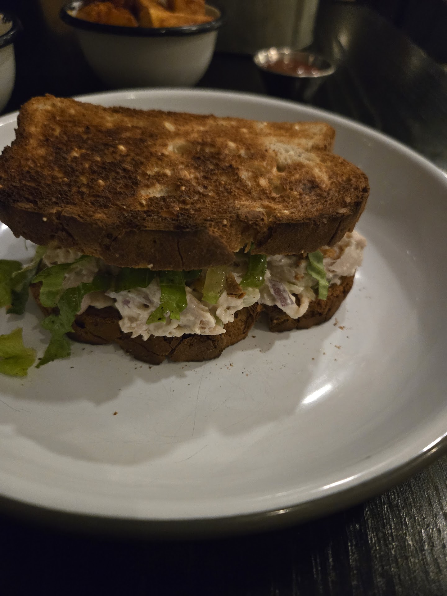 The chicken salad was high quality. Like I said,one best sandwiches I've ever had. I also ordered the potato wedges, fantastic and the cucumber salad (highly recommend). I will be dreaming about this meal. It was so good that I talked to the chef afterward and told her how much I loved the meal and thanked her for offering GF options.