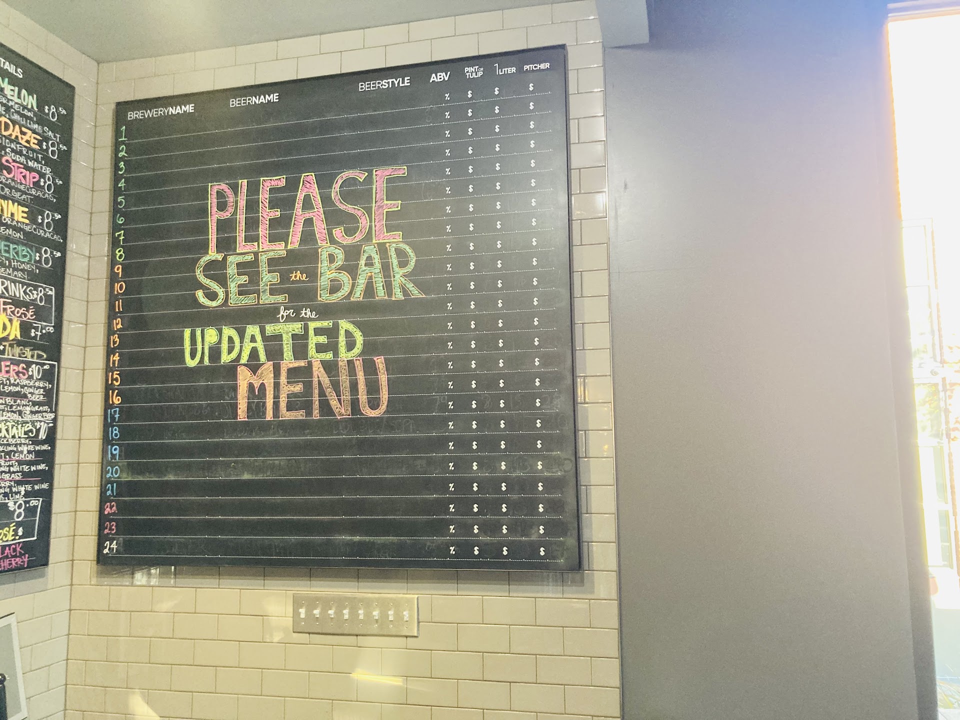 I’d give it zero stars, but had to give @ least one to write this review. BEWARE!!!!! First visit on 11/11 during happy hour. Sign @ the front counter stated see bar for updated menu. We sat at bar & happy hour prices were displayed on napkin holder. We had just got part of our order when bartender informed us we would need to pay or put a card on file because her shift was ending. So we decided to go ahead and pay. We received the bill & the receipt did not reflect the happy hour prices that were advertised/displayed @ the bar. The bartender then told us we can either pay the price on the receipt (more than the advertised prices) or wait until the manager was onsite. After further discussion the bartender told us she was trying to be nice and we needed to pay price on receipt or wait until the manager got there. Since we had only taken 2 sips of our drink and had yet to partake in the partial order that had been brought out we asked the bartender if there was anyone else on-site we could talk to. She said no. We then asked if they could get the manager on the phone and she said no. That is when we had no other option but to leave since we found the staff to be very confrontational & further escalating the situation in demanding that we pay or wait for the manager who wasn’t scheduled to come in for another hour or so. When we were leaving outside the establishment we noticed a sign advertising happy hour price. This sign had some items priced different than what was advertised @ the bar & different than what the bartender tried to charge us on the receipt.(bar states fries AND tots $1.29, sign outside states fries OR tots $1.49, bar charged us $1.99 each for an order of fries & an order of tots). What made it even more concerning is the staff admitted false advertising is a recurring issue at this establishment yet failed to take ownership for it and attempted to try to make us, the customer, accountable for their lack of quality control/assurance (pay or wait for manager to arrive onsite). This was our first...