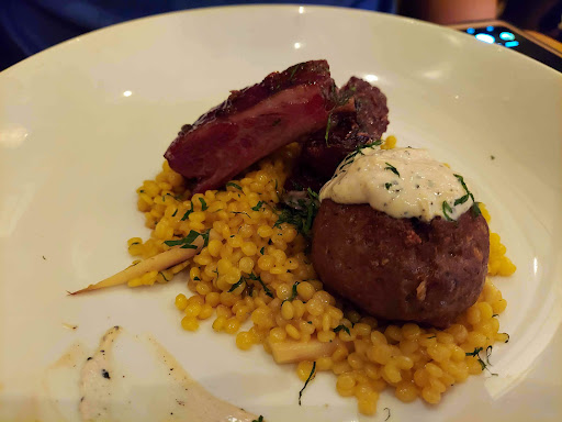 Next was the scallop crudo, a dish I typically love. This one seemed to be inconsistently overseasoned on one half of the dish because you could see the heavy amount of seasoning. The dish was also on a bed of melon granita which melted and created a watery salty home for what was left and made it hard to eat.