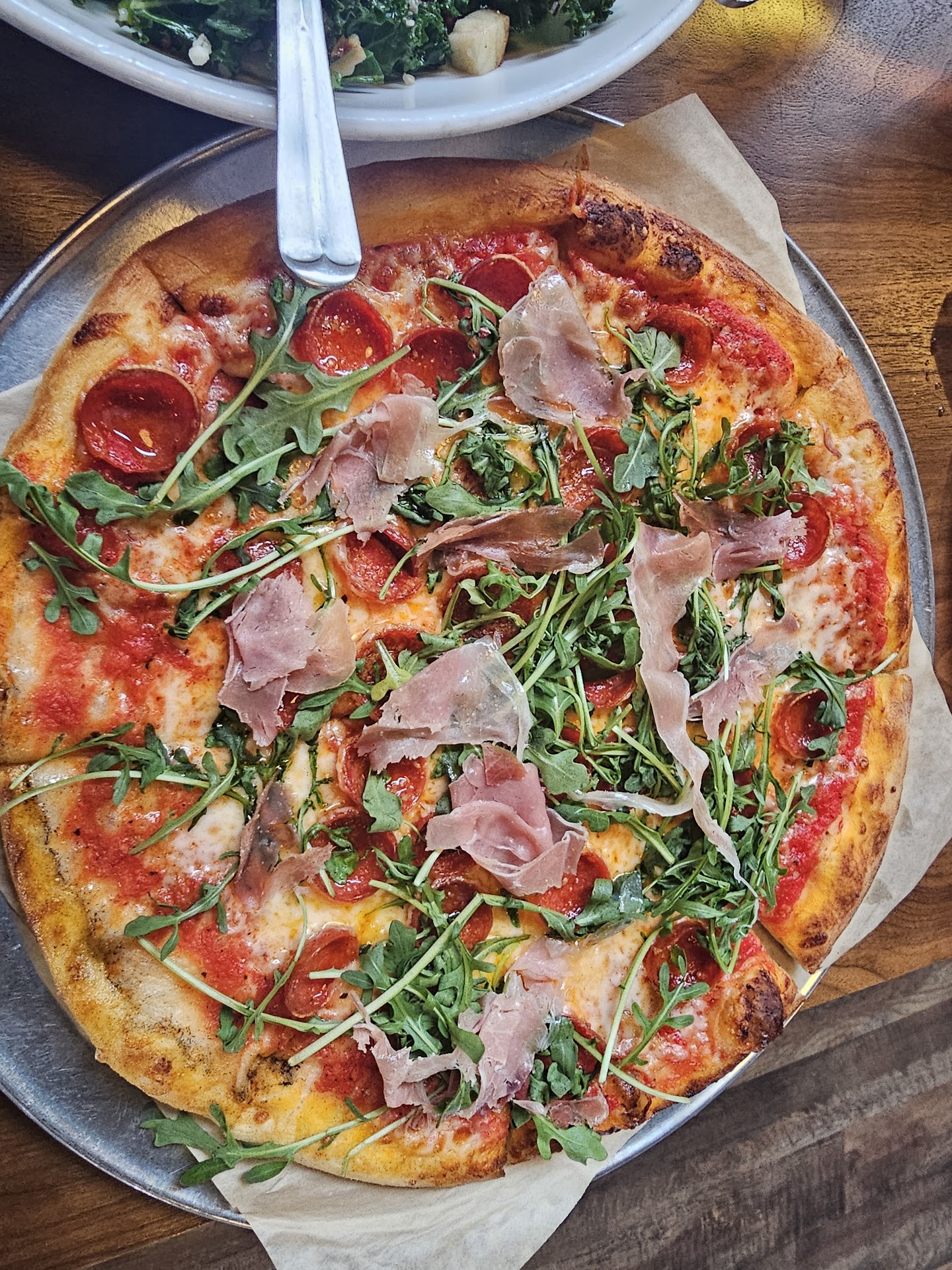 What I'm happy to share is that they have really yummy food. Like their pizza paired with their Kale Salad for $7+ was amazing. Or their Hot Italian Sandwich paired with their Winter Kale Salad was soo good!