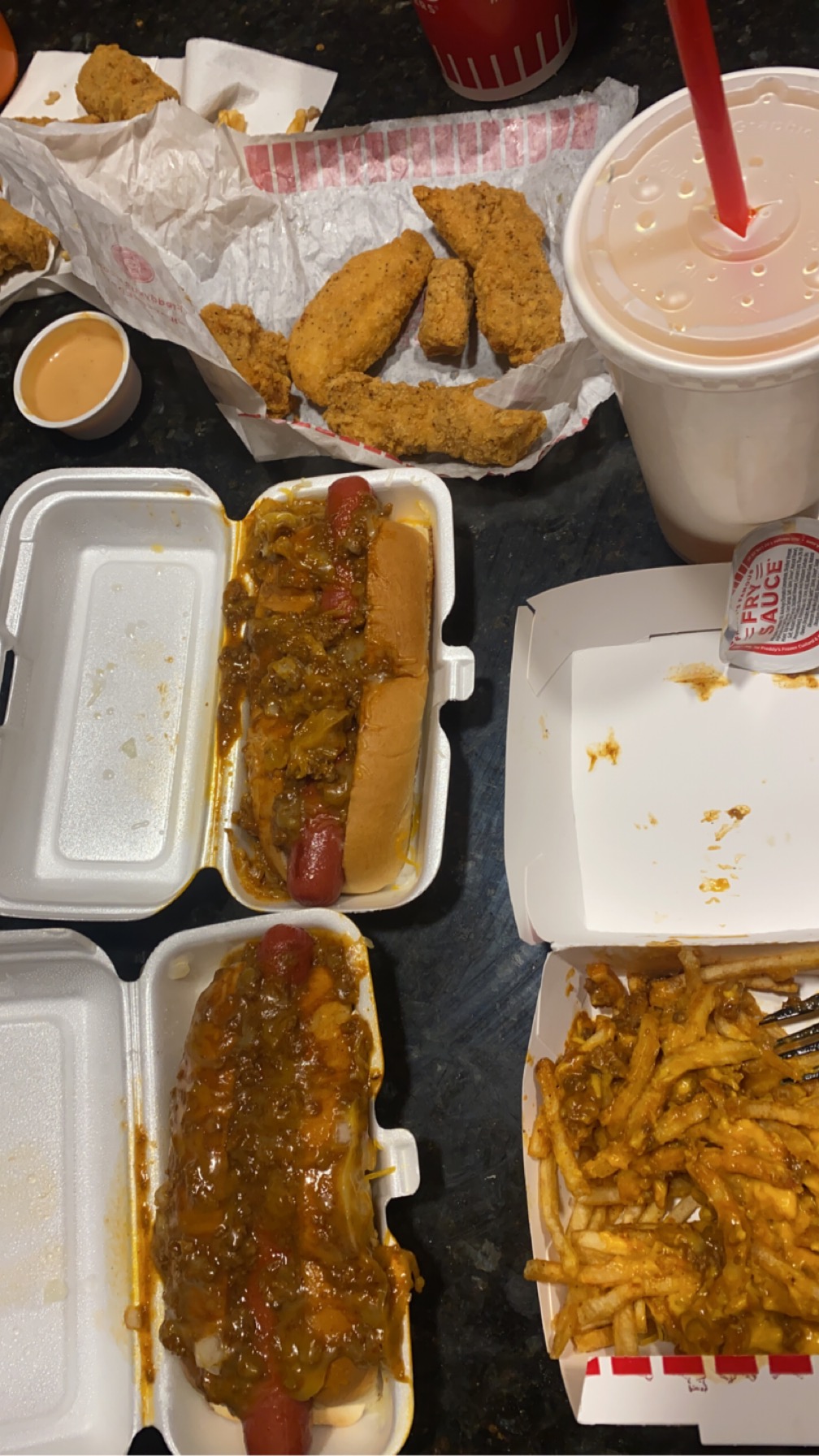 Read moreI don't normally leave reviews on places but I'm still a little shocked from my experiences earlier. Me and my family ordered food, and it was fine minus some of the fries being a little bit cold. We went back up after to get ice cream, and I ordered 2 concretes and a sundae, dine in. Our number was called and I honestly stood there for a moment because I thought they were kidding- we paid for regulars, and my concrete wasn't even half full with no toppings while my brothers had no toppings but was at least three quarters full. I grabbed the two and stood there for a moment unsure if I should say anything, I'm not great with confrontation and I'm truly surprised I'm even writing a review. The woman behind the counter stared at me and flipped her hand in a sort of passive aggressive way. A moment later, she hands me my dad's sundae in a paper bag, which I found odd since we were dining in. I brought it over to him and when he pulled it out of the back the sides of the cup were covered with ice cream- I mean absolutely covered, there wasn't a single place he could touch without getting his hands messy and when he picked it up from the table it stuck. I would've taken a picture to being here but I wasn't thinking about it, we had just gotten off our flight and it wad the first place we came upon visiting.