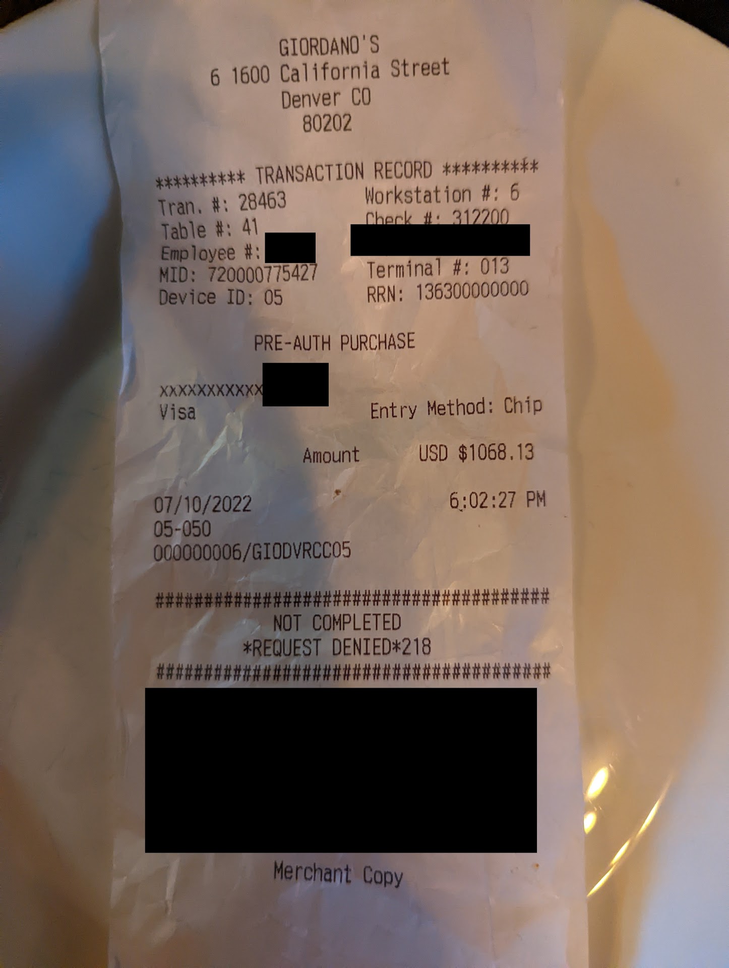 After that, he went into the back and looked through the system and found the record of the fraudulent transaction being made, along with a crumpled receipt printed with the charge on it. He then changed his attitude and attempted to reconcile the situation by sending us screenshots of the charge history in the computer system. The charge was clearly processed, cancelled, and documented.