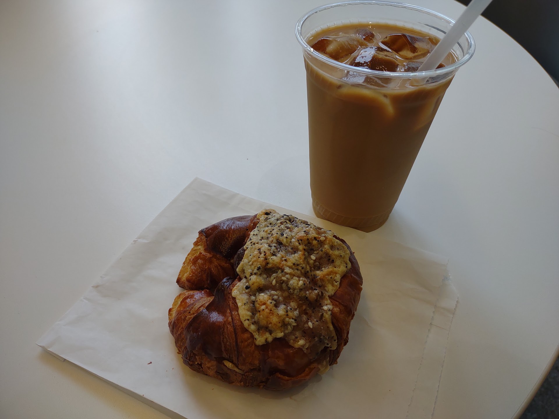 The barista was friendly. The space is open and well-lit. I really liked my mocha, which was quite sweet. I completely get that not everyone likes their coffee sweet. I believe the mocha included Ghirardelli powder and syrup.