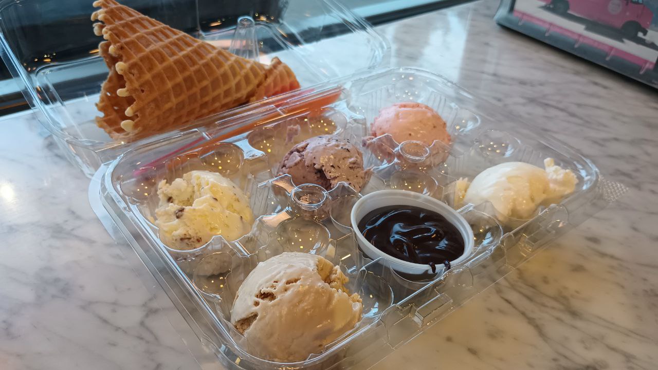 We got a flight for $10.99 before tax! 5 flavors with scoop sizes the same as a “single scoop”, generously topped off. update July 2024: the price has gone up to $12.99 for a flight; still a decent deal