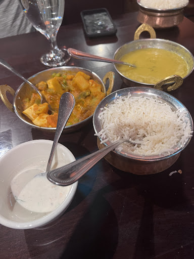 Read moreThis place does not disappoint. Better service and hospitality than many other Indian places I go to occasionally. I love the decoration upgrades they are working on and I can’t wait to see the place when they are done. Here you are welcomed as a friend and every time I stop by, they have been cheerful, patient and very helpful with order suggestions. Tonight they were very busy and were doing their monthly vegan buffet and the dishes looked mouthwatering. I chose my favorite dish from the regular menu however; Saag Paneer, and an order of Garlic Naan bread. My friend ordered Masala with Lamb and it was divine. The lamb was stewed to perfection, melted in your mouth and the masala was spiced just right. The food portions are perfect and filling and I recommend family style sharing with friends. Taste and flavor balance are consistent the past times I’ve ordered as well as tonight and I’m glad they offer choose your spicy 🔥 level. I needed the kick but I also love the wonderful tones of the spices without the heat. So, that means their dishes stand strong on their own and have been crafted well. My friend and I paired a glass of a rich, dry Cabernet with our entrees and I have to say that the Masala paired the best with it. I am going to try a Pinot Grigio or a Chardonnay next time with the Saag Paneer and see what notes are brought out in our dishes (like the ginger). Definitely coming back! (Btw, they didn’t have Momos tonight because of the vegan buffet, but those Momos with the dipping sauce are amazing little dumplings you can get steamed or fried and they are something I like to get every...