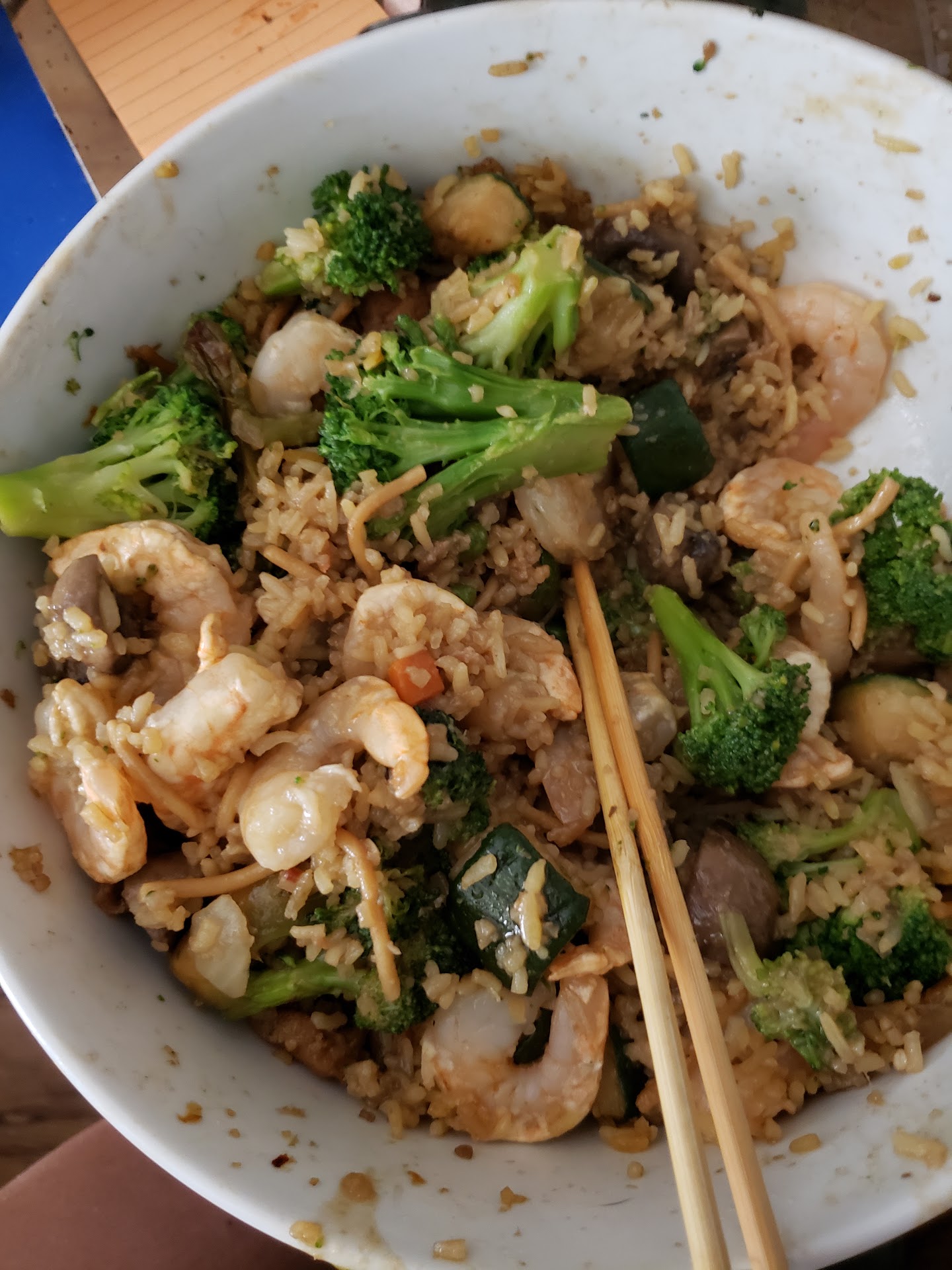 -Pepper Shrimp- they somehow cook them so that the shells become edible and crunchy. Honestly these are some of my favorite shrimp ever. -Potatoes- these babies are MAGICAL. I usually get a side of these in addition to the combo meal. -Jalapeño chicken- not very spicy or jalapeño-y at all, actually quite sweet. -Satay Chicken- tastes like southern fried chicken. -Beef broccoli- good if you don’t mind your broccoli crisp. Good source of fiber to balance all the oil, carbs, and protein in everything else. -Mushroom chicken- zucchini and mushrooms make this another good source of fiber. -Kung pao chicken- tons of vegetables, also a good source of fiber. Less chicken than other chicken dishes. Eating the big jalapeño chunks in this increased my spice tolerance so much in the first couple years I came here.
