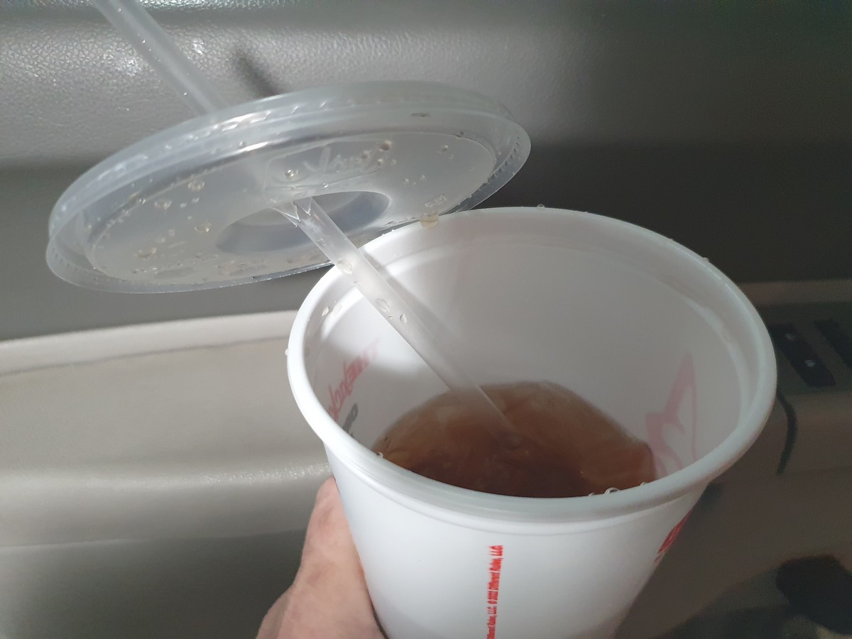 I set the drink down and asked for napkins, which they handed over....then closed the drive thru window again. Next problem....no straw. So I knocked on the window, they eventually came over, looking very annoyed. I asked for a straw, the answer "I already gave you one"...me: "no young lady you didn't"...and I added, "...and the lid to the drink was loose, that's why is spilled all over me". The answer?: "no, I put the lid on". Blank stare. No apology. No offer to top off the tea. Handed me a straw and closed the window without a word.