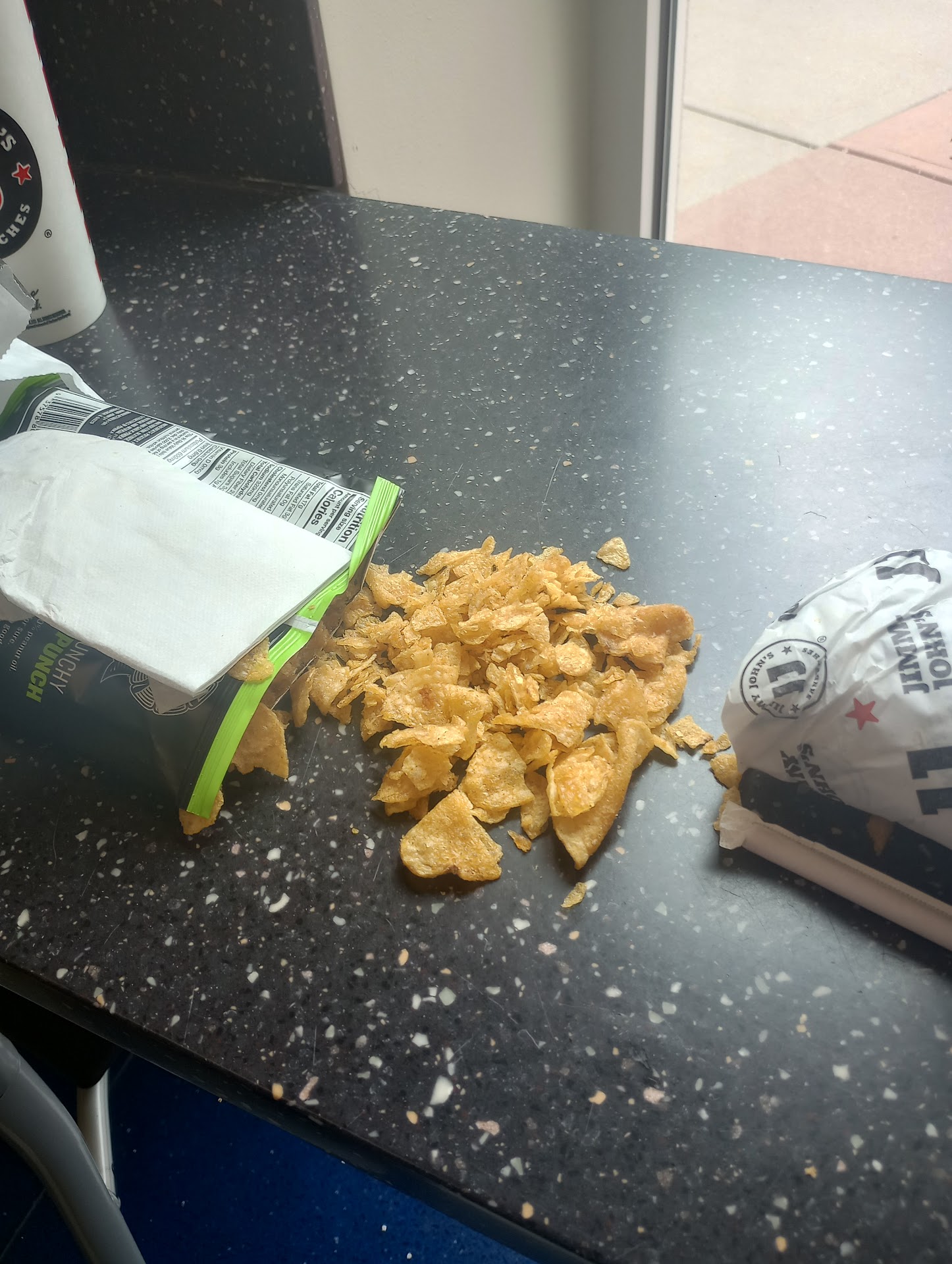 Drivers always seem to get lost trying for find the main entrance to the building as if they've never been here before and not knowing where the main entrance is when I know every driver at that store has been to this facility plenty of times today I didn't like the fact that the driver smashed my food tossing it to the ground ( saw it on camera) he was spilling my drink when I pulled out my food the chips were open and they spilled out as I was pulling it out of the bag like I always do I take that bottom of the bag up and let everything slide out and it just so happens the chips slid out of its packaging not satisfied have no other choice but to throw the chips away they landed on the table won't even bother calling the store what they going to do send out the driver with another bag of chips I just won't be ordering from them again I will also let everybody hear at this facility know what my experience was. So I spoke with the manager and he was understanding in my complaint and said the chips was part of the delivery that they had issues and he had to toss a case I had to toss my chips because they were all smashed and the manager credited the chips...