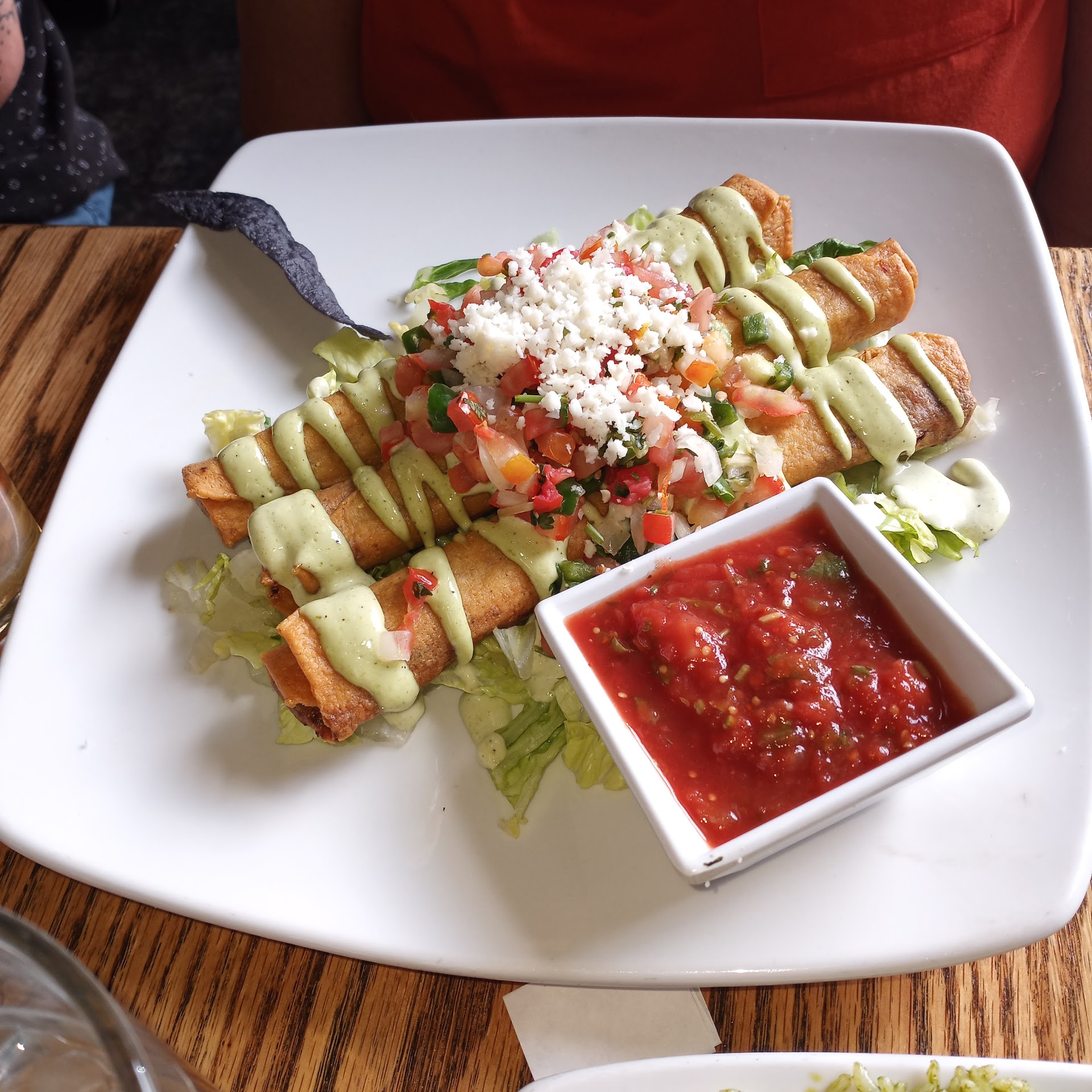 We had three items, Unfortunately they were not on the easy to select items for Google ratings, I suggest these are added. If not, the Average Joe/Jose would stop there and maybe not leave a rating, but I'm not your average Jose/Joe... I have pictures of two of the three items we ordered, unfortunately my POS phone decided to fool me when it took pictures of the third item, which I will describe what it was first. It was a chicken and spinach quesadilla that was 2/3 of the size of the plate, it had green chile for dipping, my wife loved it and scarfed it up in no time. The second item which is the first picture, are chicken flautas covered with Pico de gallo, with a side of their red salsa, again very yummy. My item was the second and third pictures which were the Kalaka's burrito with carne asada and smothered in green chili, very large as you can see. It was fully packed from the second image. The only drag about this item was the Sparing of the cilantro, one very little sprig, it was cute, though I suggest more cilantro, it rules! We came early afternoon on a Saturday and they had a brunch menu that went until 2:00 or 2:30 that had some nice items on it including some drink items, but we went for the main menu instead, we had already decided before arriving of what we wanted. For handicap folks there are two doors for the restrooms at the back of the restaurant. I would suggest the door on the right or South side of the restaurant, it has more clearance to get to than the door on the left which is the north side of the restaurant with a clearance of about 31" to 32" with tables and chairs, it was pretty packed over there. I do encourage folks to try this place even though parking is a bit difficult, the food is outstanding! We'll be...
