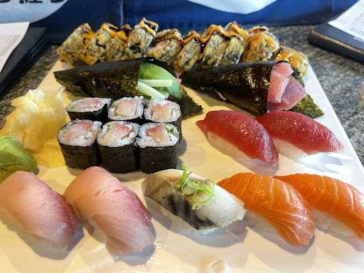 This was my first time, my table was dirty and sticky, the menus were also dirty and sticky. The restaurant in general was not clean as a good serving industry should be. I ordered green tea and received a white coffee cup with a ring of scum on the inside. When I addresses it the waitress said that was the tea, upon pouring some out and showing her the solid ring that I could wipe off with my finger, she decided I was right and brought me another tea. The chefs do not wear hair nets or caps. They had gloves, but there were several occasions I witnessed poor handling of food after touching other surfaces and not washing hands in between or changing gloves. My food came up on the sushi bar and sat there for over 10 minutes before my waitress brought it to me, other staff saw me waiting and my food waiting and still my food sat at the bar. When my food did come out it looked sloppy and did not smell fresh or clean. I chose to leave without eating due to their lack of concern for the health of...
