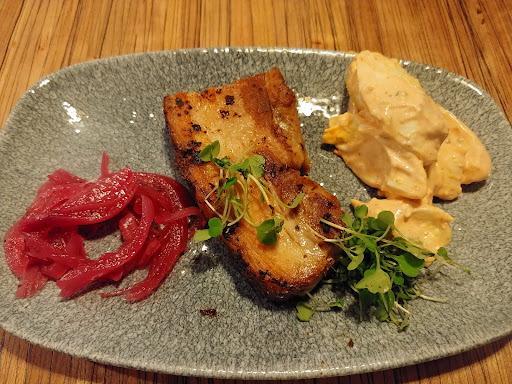 Ā Ā Ā Read moreFor being an hotel restaurant, I really enjoyed my meal. Started with the pork belly appetizer, maybe a little bit on the dry side but overall pretty tasty, nice presentation, the devil eggs side it's a nice way to complement the dish. For my entree I ended up getting the trout on a bed of quinoa with a side salad: the trout was cook well, not too dry and the skin was nice and crispy. The quinoa was a little bland, I would have enhanced it maybe with a little chopped walnuts and/or some kind of chopped veggie. I finished with the chai cheesecake with berries, which was also pretty tasty, not too heavy, the sliced apples on the cheesecake were a nice touch too. Service was good, and the beer selection is pretty nice, both draft and can beer, would definitely come back...
