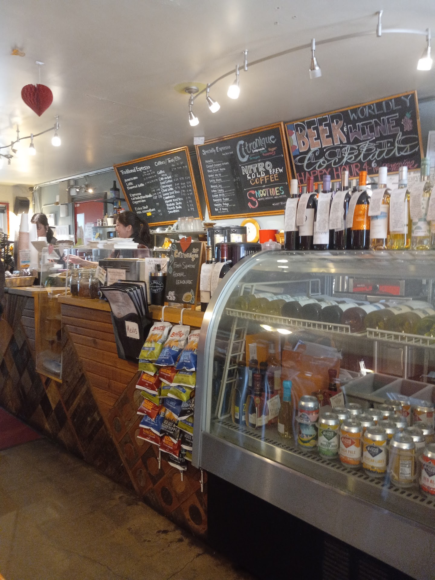 Read moreThis is a fairly small, but popular place. Normally, I prefer black coffee to flavored coffee drinks but the bananas foster espresso drink sounded interesting. It did live up to the name delivering on the banana flavor. If you're a fan of flavored coffees there are a lot of choices here. There are also good unflavored coffees. There is a selection of sandwiches, chips, cookies and pastries. The Harvard breakfast panino was very good with ham, cheese, egg and guacamole. Just the right size too. There is also wine and beer available and a pear cider that looked interesting.