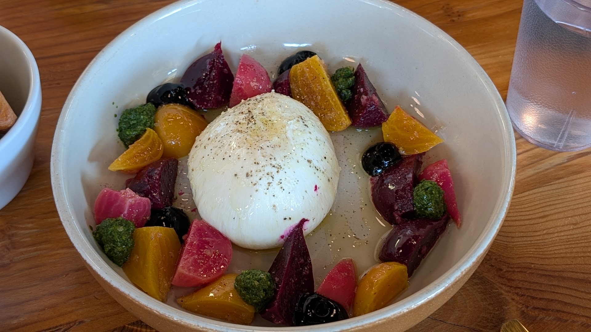 The burrata has no place being this good on a bakery menu, but there it is, doing its thing, surrounded by beets, tomatoes, pesto, and other goodies.
