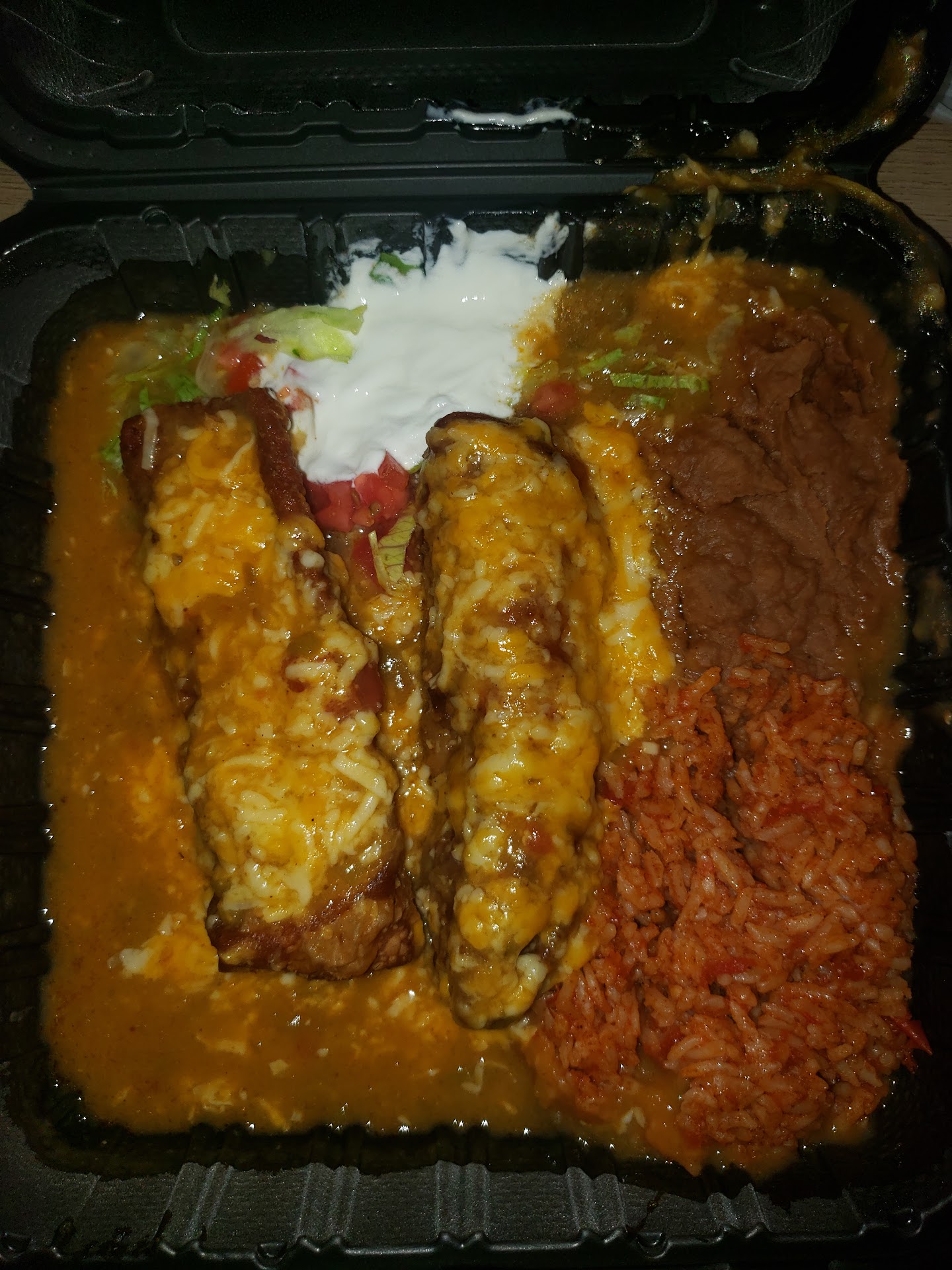We get the food and both (girlfriend and I both ordered with no cheese) of the dang burritos are covered in cheese. No big deal, but they asked what was wrong when we didn't eat them and told them that we ordered them without cheese. They remade them. Which was pretty cool. Then, they bring the dang things out again and it only had one kind of beans in it (black beans).