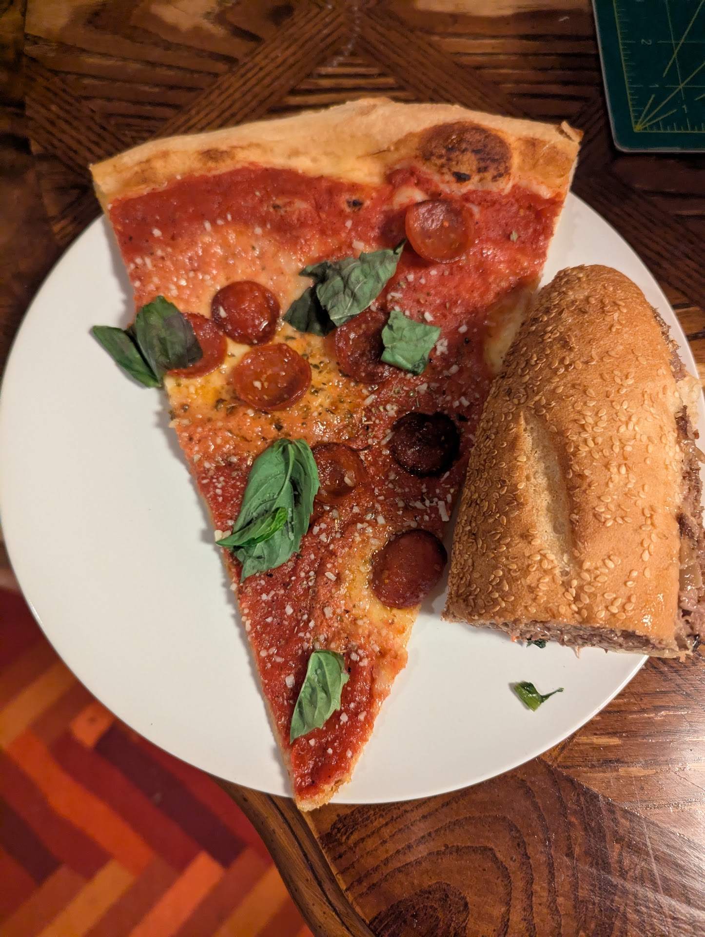 We ordered a pepperoni pizza and a cooper sharp cheesesteak. The cheesesteak was, without a doubt, the best I’ve ever had. Not just in Denver, but anywhere. The freshly made sesame seed roll was fantastic and the ratio of meat to cheese was perfect. The chef came to our table and let us know the pizza was going to come out about 10 minutes late because they overcooked the first one, which was no big deal to us. He came back around a few minutes later with a complimentary pepperoncini wedge salad, which was a very nice gesture. The salad was bomb by the way, very garlicky and creamy, and the addition of bread crumbs made from the leftover sesame seed rolls added a great textural component. Lastly, the pizza came out and I could tell just by looking at it that it was going to be great. The quality of ingredients really stuck out here—the tomato sauce tasted simple and fresh, the mozzarella was delicious, and the crust was on point. It had almost no flop, despite the slices being huge. It was crunchy with just the right amount of char and chew. Unquestionably a top-5 pizza in Denver.