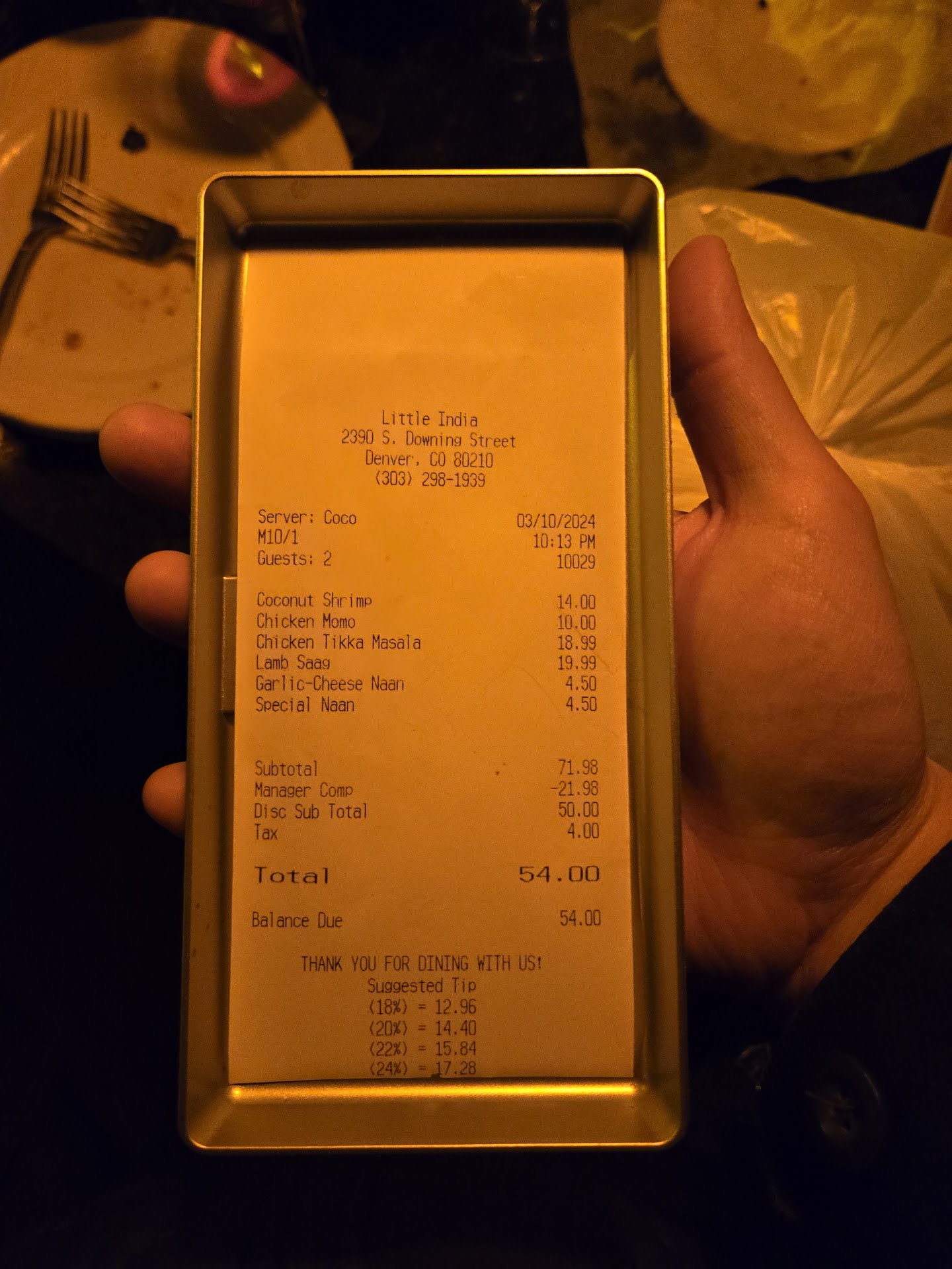 Having eaten here and ordered delivery multiple times, the food has always been amazing, the service is good (I have never had bad service, but had slow service), and the delivery times are prompt. My issue is with the management who has always had their employees address the issues I have had instead of talking to me directly. On more than one occasion items were forgotten in my delivery or take out order. Having 12+ years in the industry as well as ordering food from different places often, I understand mistakes happen. Traditionally places will refund you for the missing items and all is well. Evidently management here will not refund for any reason, especially at orders not in the restaurant. The first time something was forgotten on my order (years ago), they immediately sent me a coupon via email for a free appetizers (it was an appetizer forgotten). While this wasn't the "best" solution, I was more than content. I was happy that the establishment recognized the mistake immediately, did something reasonable to rectify it right away, and gave a proper apology for the issue. The coupon expired before I could use it due to the fact I kept forgetting I had it when I ate at Little India, but that is on me. Again, while I would have preferred a refund for the missing item, I was satisfied with the way the issue was handled. The most recent time I had a friend pick up my paid to-go order (I ordered and paid over the phone and a friend picked it up). When my friend showed up to my place, it was missing a salad and 2 orders of naan. I called and spoke with the person who took my order, Sophia. I told her about the missing Naan bread (I completely forgot about the salad). They told me that the management will not give a refund, especially if the order is not there. The next time I order, I should remind them about this mistake and I would receive the missing items then. I politely told her that would not work for me and I would like to find a resolution the same day. I figured the management seemed untrusting of orders not currently in the restaurant, it is very unlikely they would remember or trust me when I order again, I also had no clue when I would order again. I told her while I would just prefer a refund for the missing items, I was open to other resolutions. During the conversation I told her that I am inside the delivery zone. She suggested that they just deliver the 2 missing orders of Naan, but after agreeing that would be satisfactory, I was informed it would be about 45 minutes. The delivery driver was there in about an hour and delivered my missing bread. I want to very clear that all the employees I interacted with were friendly and polite. I never spoke with the management, but the audacity of their refund policy disturbs me. Especially since they expect their employees to delivery this outrageous policy. I know how mean and ridiculous people can be to service industry workers, so I can only imagine some of the abuse these employees have been through enforcing this ridiculous policy. Not to mention, the refund would have been less costly to the company than sending the missing items via a delivery driver (cost of making bread, salary of driver, other overheads, and probably would not have gotten this...