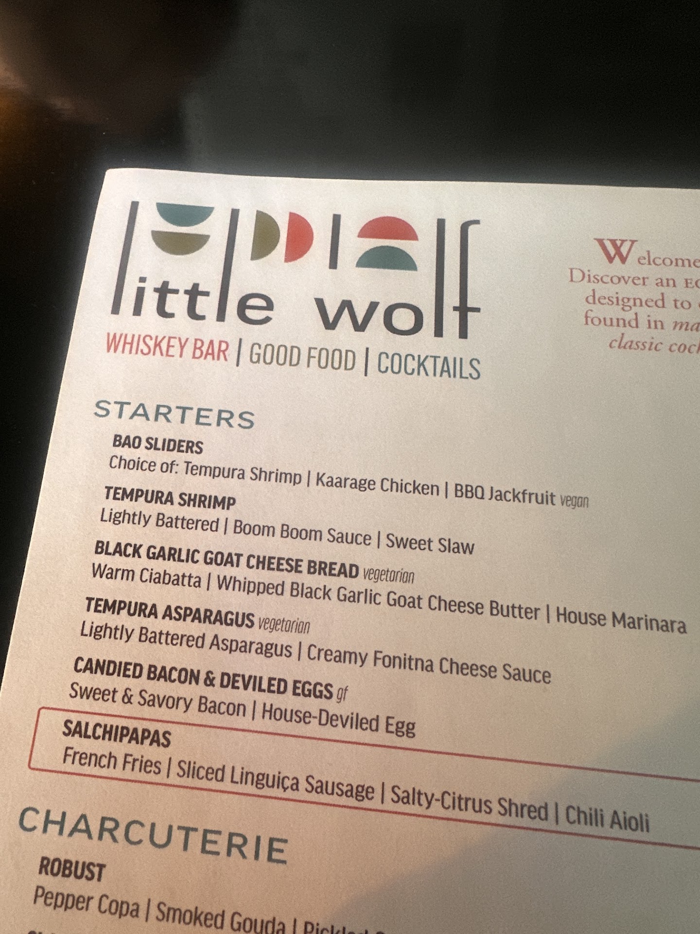 We went for the soft opening, and our experience could not have been better. Christina was our fantastic server, we met Clark also, and saw Johnny running around to tables with his expert single malt expertise. Christina guided us in what we ordered, and her expertise of the menu was on point and extremely helpful. As far as the vibe, it was energetic and fun. Nice setup, with one part being a bar area, and the other part more for dining room experience. As far as the drinks, they had quite a selection of them, with a fun Ten-Four part of the menu where you pair one of their liquors with a classic drink. Clever. We also did one round of the single malts, and each was unique, different, and exactly how Christina described each. As far as the food, it was absolutely fantastic. We just ordered three appetizers, and we definitely plan on coming back for the main food items. The classic goat cheese bread was unique and tasty, the deviled eggs were straightforward but tasted high-end (with lots of pieces of bacon in the accompanying salad), and although I am not an asparagus guy, my wife and friend said it was some of the best they ever had. Generous amounts in the portions, awesome presentation, and all delicious. My only recommendation was that they have some sort of flight you can order off the menu for the drinks, but what they have already is just fine too. This place upholds my eternal belief that, when in doubt of where to go, go to the place with an adjective/animal in its name. Way to support my learned Fact of Life, Little Wolf. This will be one of our future favorites for sure. I definitely recommend, and see you there (we live down the street, so that is actually a high probability rather than just my traditional sign-off...