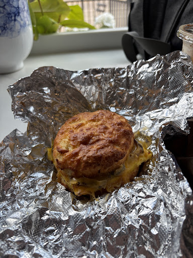 Also the whole "made in house" thing doesn't stop at the syrups. Their homemade cheesy biscuits served as the Perfect vessel for the crispy egg and bacon breakfast sandwich I scarfed down in under 5 minutes