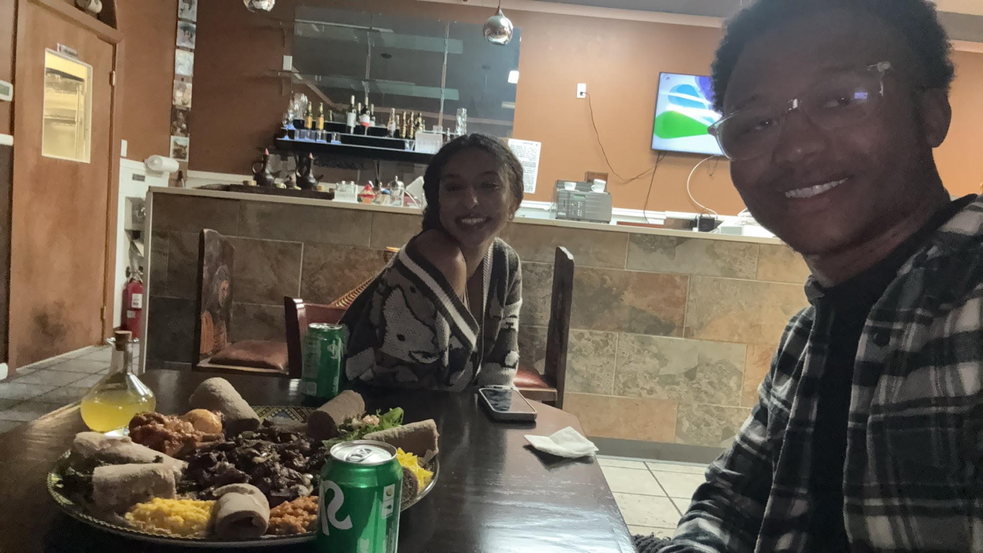 When we got the bill, I noticed that we were both charged for a different dish (Derek tibs, 2nd last item on the menu) that has a very distinct name, which we definitely did not order. We brought it up to the gentleman behind the counter and honestly, it wasn't that big of a deal and we would've paid if they acknowledged but he became confrontational and said "so what do you want me to do about it?" and that "beef tibs is juicy and Derek tibs is dry".