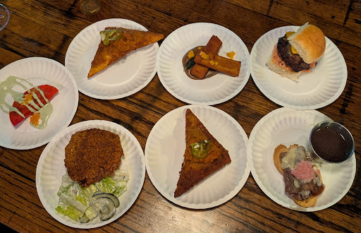 During our recent visit, last Saturday, we were able to check out Misfit Snack Bar, which was featuring a special menu with a passed hors DimSum offering $5 per bite food items. We sampled and shared the French Kiss Tartine, Jamaican Beef Toasted Ravioli, Sweet Potato Fondant, and Nashville Hot Roulade and the My Fu**ing Slider. We found the Jamaican Beef Ravioli, the French Kiss Tartine, and the Slider to be exceptional standouts!