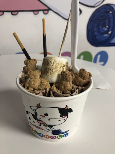 Read moreThis was my first time here and it was a great experience I had with my daughter. She had a hard time deciding on what she wanted with the many choices they had to choose from but finally got Unicorn Magic! I just got a simple strawberry, banana, and pineapple with graham crumbs and whip cream. I am looking forward to going back and watching them make my rolls. It is a great experience and something kiddo enjoyed doing with me. The staff was very friendly and helpful when it came to deciding on what we wanted since I was confused at the beginning. The uniforms were colorful and bright along with the ambience of the creamery itself. They also have punch cards for you so when you get 10 punches the next one is free! I love that cuz kiddo most likely will have us going quite bit. I read a sign saying please take the line outside so I am betting this is a popular place so just be prepared for a long line just in case of a busy day or time but they did move pretty fast. I wish the lobby area was a bit bigger with more seating but go check it out if you haven't already!! I think we have another favorite ice cream place for our to go...