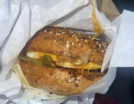 I placed my order online, and a lovely woman came and bought it out from the back to the seating area for me. The bagel sandwitch was fresh and warm, so I proceeded to eat it for breakfast. When I say alone this bagel sandwich is worth coming back again and again, I am not exaggerating. This sandwitch alone would be a reason to return. I work night shift and sleep during the day, and I would wake up early to make it to Moore Bread Bakery for that bagel sandwitch.
