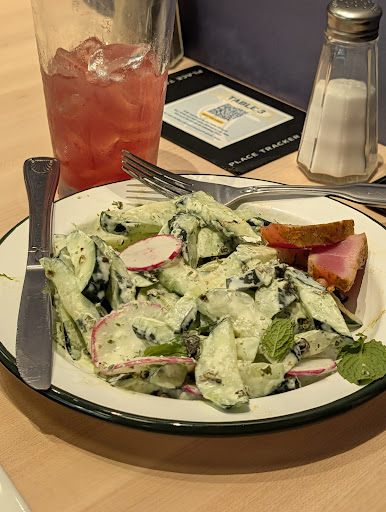 The place wasn't bad, but that cucumber salad is a miss. Even someone at the table next to us complained about it. It would make a great small side, but as a menu item it's 0/5 trash.