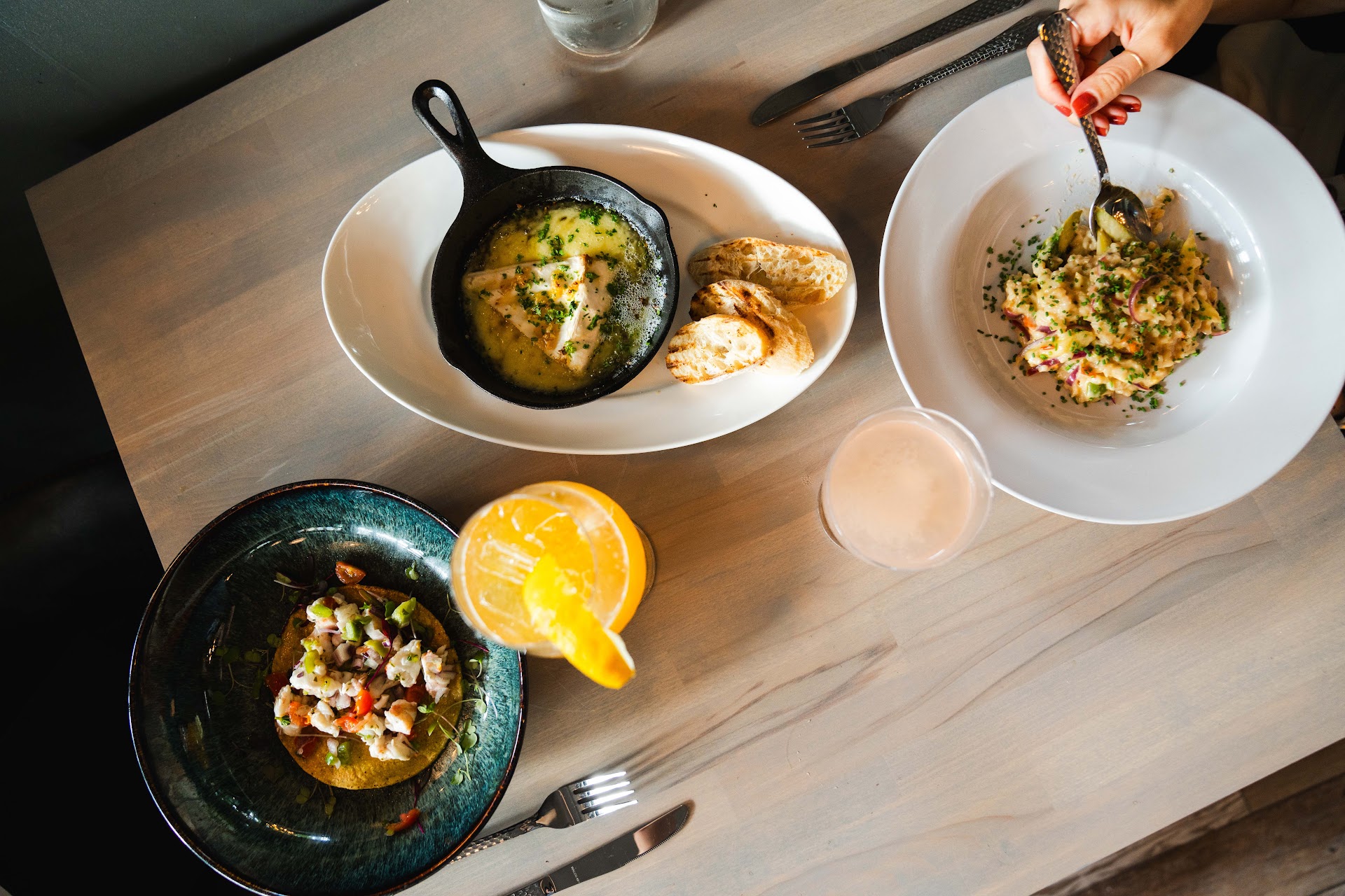 This is a tapas bar, so my wife and I shared the brie, risotto, and ceviche tostada. The plating, as you can tell by the photos, will tell you all you need to know about how much pride they take in their cuisine. Everything tasted sublime. All the bases of timeliness, freshness, and quality of ingredients was evident.