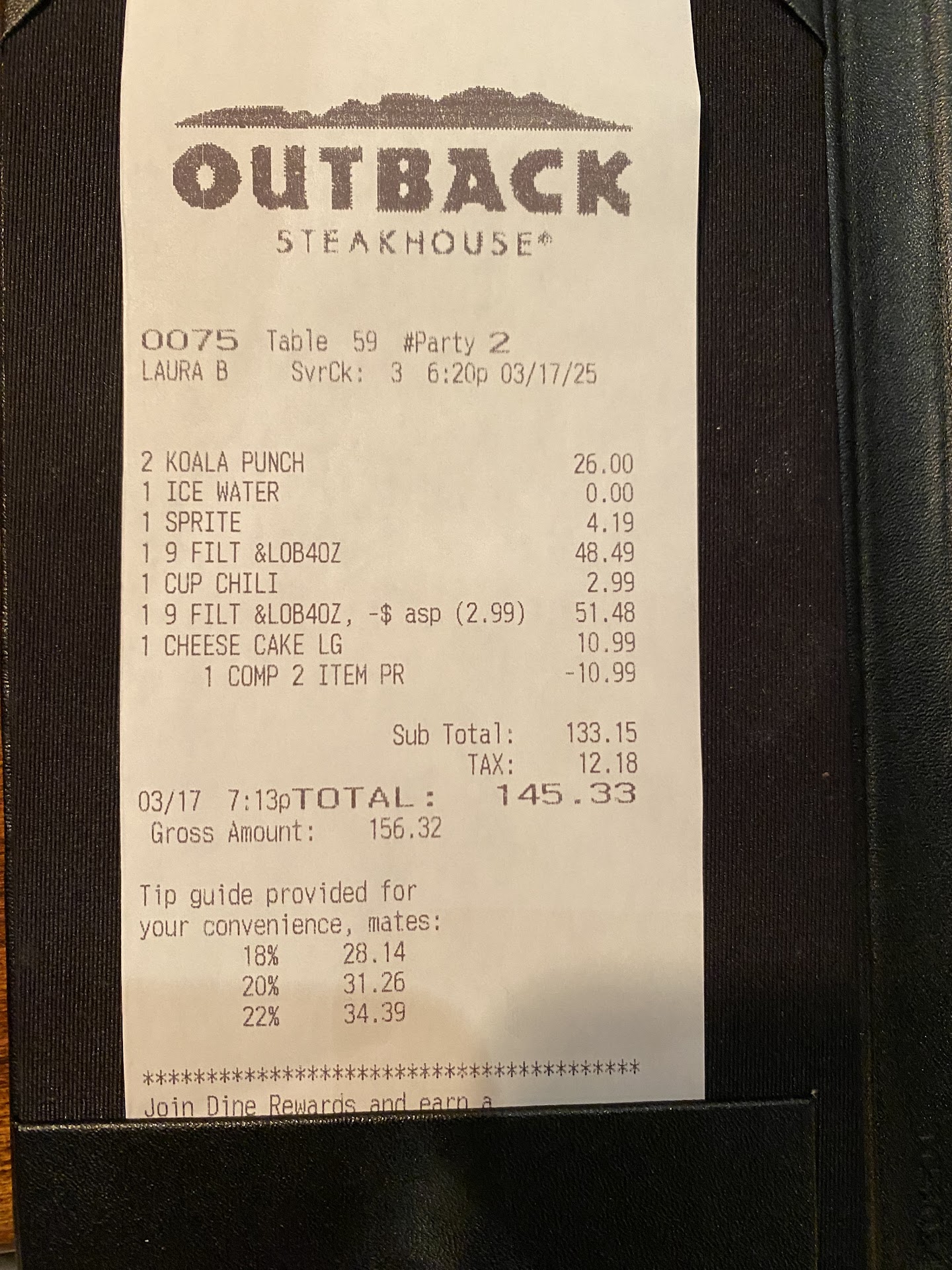This particular Outback location has really gone downhill in recent years, and it's sad to see such a decline in quality. What used to be a go-to spot for good food and a pleasant experience now feels like a place cutting corners and struggling to maintain basic standards. I hope they take this feedback seriously because, at this point, I can’t see myself returning...