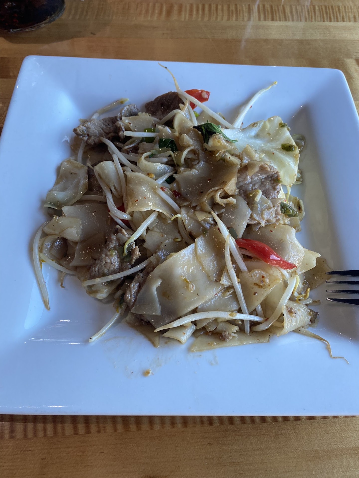 This is a review for two experiences I had there in one day unexpectedly. For lunch today, I ordered delivery for their pad thai…. Absolutely divine! When I was ordering though, I was torn between that dish or the yellow curry. I knew I would try it, just didn’t know it would be in the same day. I was driving home this evening from Home Depot and was going to grab dinner while I was out. I thought, you know what let’s try the yellow curry….. turns out, the restaurant was only 6 minutes away… PERFECT! Upon entering we were greeted with exceptional customer service and a warm, friendly smile. I originally was going to do takeout, but immediately decided to stay to eat so we took a seat at their bar. We had the fortunate experience to meet with the owners tonight. You could feel from the conversations the passion each had owning the restaurant and we learned they made everything in house along with some upcoming new items they’re testing out. I by far have never felt so joyful leaving a restaurant. I’ll be back very soon to try the thai spaghetti (had a teaser of it tonight on our way out, and MY OH MY).
