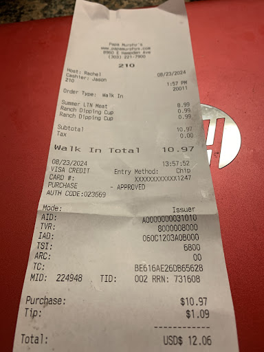 Read moreWell. .. Rachel has always been kind of stand of fish however my last visit I encountered Jason he had a bad attitude to the point I had to ask him was there a problem after which he said no then followed me to the door slammed it and locked it. Today I went in a new employee training had to go to the back and get Rachel because she didn’t know how to ring in what I wanted which is understandable if you’re new however Jason came out of restroom? ( door behind register .. didn’t wash his hands didn’t greet me (bald headed white guy with glasses) came out and made my pizza after pulling a pizza from the cooler. I ordered a thin crust with pepperoni and sausage) this is the same man who slammed the door in my face last time. Yeah I won’t be back and good luck with this location. No one was in uniform (if y’all even have a uniform) no one was wearing a name tag. Just going off of receipt and previous encounters. I was going to ask for fresh pizza but based off of last visit and the amount of aggression I...