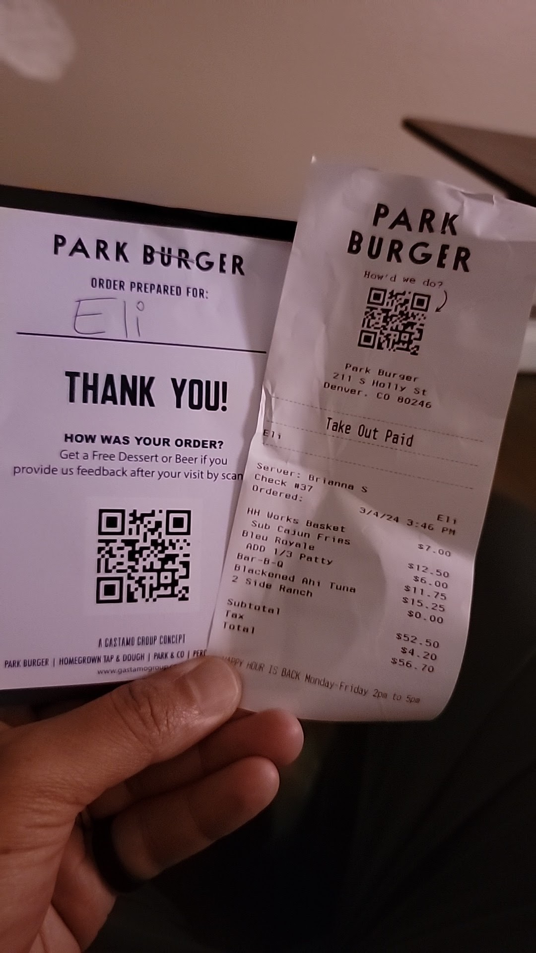 Read moreI've been to Park Burger only once before, I enjoyed the first time and was excited because the manager on duty was so warm and welcoming, she took my to go order herself and seemed genuinely happy to see me at what appeared to me a slow lunch.