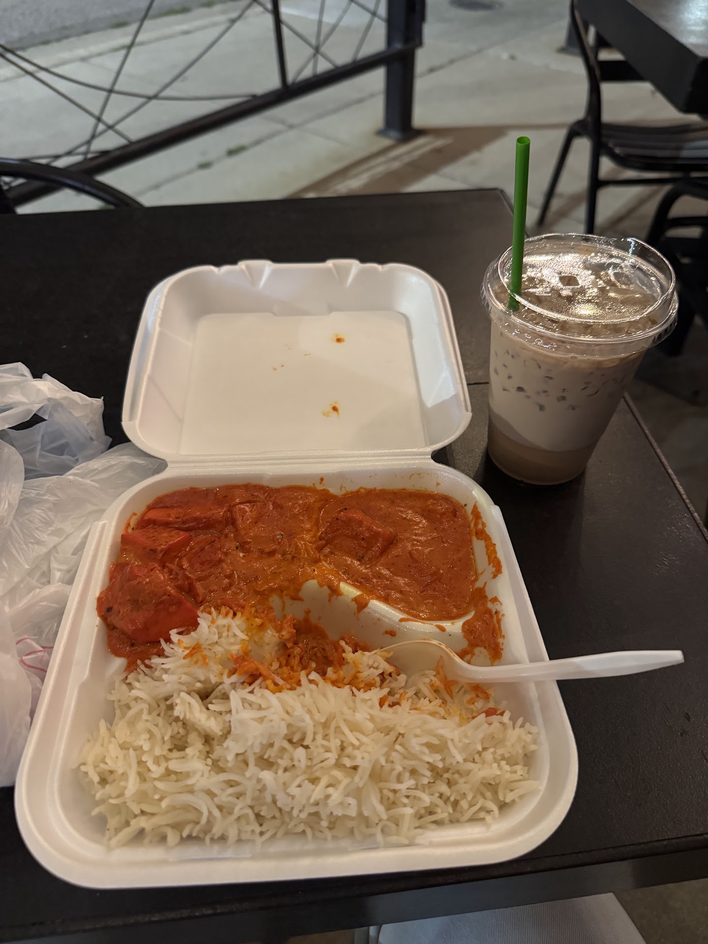 Read moreSaw this new place on TooGoodToGo and figured it try it out. Boy was I impressed! The Chicken Tikka Masala was excellent. The sauce was perfectly creamy, the chicken was flavorful, and the rice was fresh. To top it off, the sweet older lady inside came out to the patio and offered me a free iced chai tea to go along with it. It was an excellent addition. Iâll be coming back and bringing my...