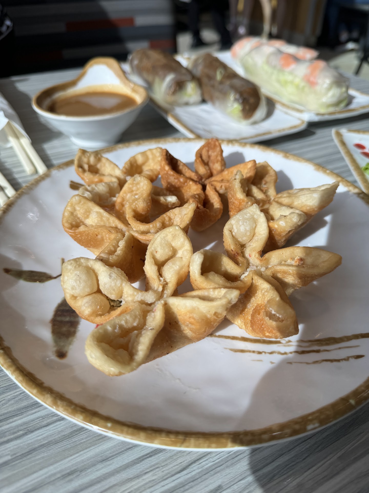 During my recent visit with a friend, we tried a variety of dishes, including the pho deluxe, crab cheese wontons, shrimp and pork spring rolls, grilled beef spring rolls, regular pho brisket, grilled Shrimp and egg rolls vermicelli noodle bowl, beef lo mein, caramel oolong milk tea with boba, and mango tea.