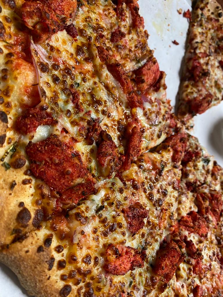 the pizza by itself was totally fine - crust: slightly sweet and more chewy than crispy but totally fine for a pizza crust sauce: nothing to write home about, not terrible, not fantastic either toppings: very fresh mushrooms etc fine pepperonis , did it knock my socks off ? No, but perfectly adequate