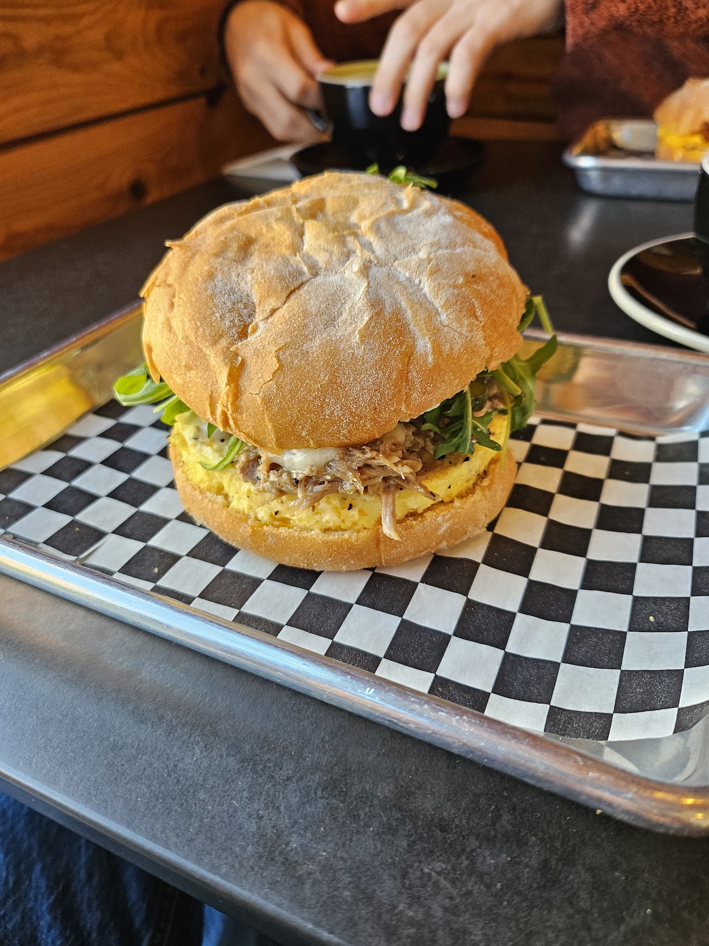 If you're looking for a cozy, classic cafe that knows how to make an espresso drink and delicious small dishes, this is your place and certainly is mine. First, I don't know how long it's on the menu, but The Duke sandwich will blow your mind and taste buds! GO GET ONE OF THESE BEFORE THEY ARE GONE! It's a pulled pork sandwich that has obviously marinated in a spectacular season palette to the point where the meat actually melts in your mouth. The pickles on this thing are a perfect match along with a small pile of fresh baby kale. I ordered it on a whim and, wow, I can't imagine why there wasn't a line out of the front door just for this sandwich, I'm not joking. Go get one...right now. The barrista who was making our espresso drinks did so with artisan skills and it was exceptionally made. So the location, it's almost the size of an extra large walk in closet and seating inside is for only about 25 people, and that would be tight. There is more seating outside on the front patio and of course gettingsomething to go is an option. We went here on a Wednesday morning for breakfast but ended up getting there closer to 10:30 and there were only 4 other patrons there so we had a great experience. I hope this place is doing well because I would like to know that a niche coffee shop can still survive for long in this day and age. If they advertise The Duke sandwich and keep it consistent, I'm sure this would become a national chain, LOL!...no, seriously. Go Get One...