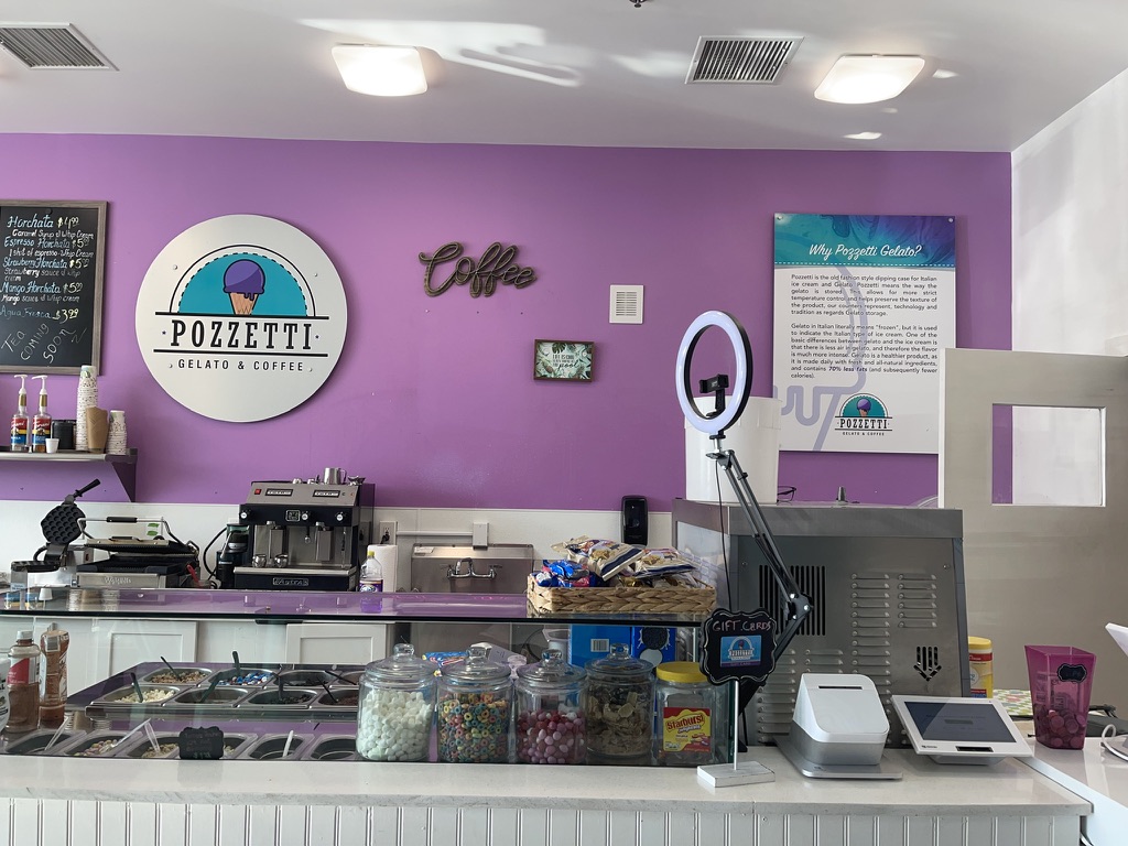 Read moreThe inside is very cute aesthetically, but pretty small so we had to move the chairs around to get our stroller back out of the shop. The gelato flavors were in round metal tins with lids, so you can't see what you're ordering. As a result, the marshmallow flavor I ordered was just vanilla with marshmallow mix-ins. I wouldn't have paid $8 for a 5oz cup of vanilla if I had known the marshmallow was mixed in and it wasn't marshmallow flavored. The spoons used to mix in the marshmallows definitely weren't cleaned in between orders because I also had sprinkles and cookies pieces in the cup too. About halfway through eating, I found a dark hair in the gelato and just ended up throwing the rest away. As far as flavor goes, even for vanilla it was pretty plain and had large ice crystals in it, unlike the smooth, rich, creamy texture you normally get with Gelato. Super disappointing because I was very excited to...
