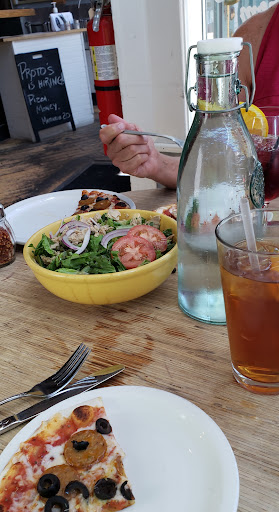 The pizza was so delicious! You could have a small pizza which is basically a personal size one with any of the specials or make your own.I had a delicious small pizza with Spinach, portobello mushrooms and tomato and mozzarella while my family had pepperoni, sausage, black olives which I had to taste and it was delightful.I also had a yummy Bloody Mary but they call it something else. The garnish included an olive and.pepper and lemon/lime. Sooo good! However, my son had a chocolate chip cookie sandwich with mint chocolate chip gelato and chocolate syrup drizzled all over and I had a little. Soooo heavenly.The cookies were nice and warm and melt in your mouth goodness. We had to go on our last day before heading home just for the chocolate chip cookie ice cream sandwich which I got my own. We had a very delicious pizza too and another Bloody Mary. The service is outstanding! The bar is so cool.The top is made out of mosaic. Highly recommend going there. We definitely will be returning when we visit Denver again which I hope will be soon.It will be the only pizza place we go to whenever in the Mile High City. They say there is no such thing as bad pizza well is there such things as heavenly earth shattering pizza. Absolutely and you'll find it at Pronto...