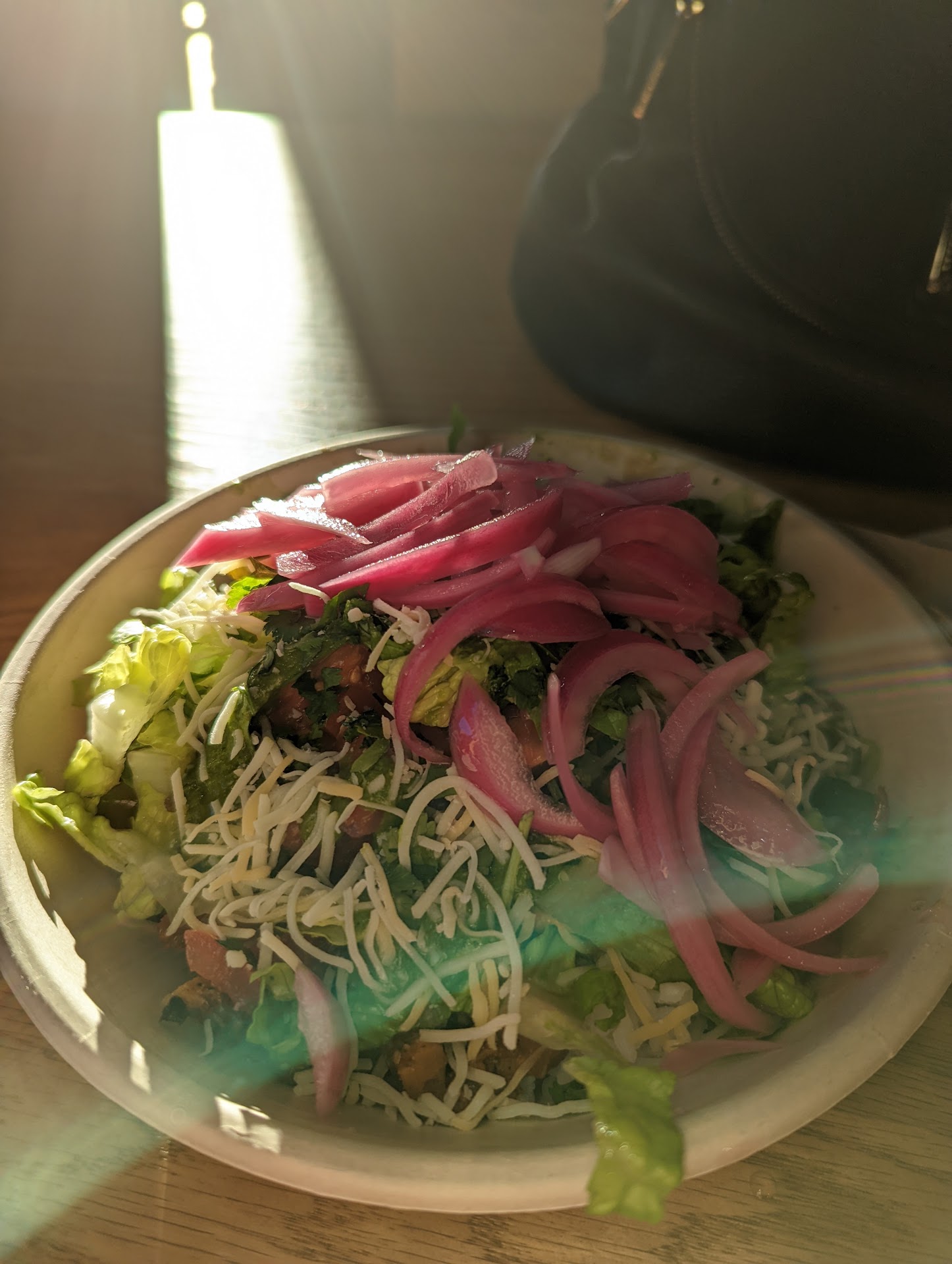Girl working the line gave me the skimpiest portions Ive ever seen. Barely any chicken so I asked for extra. Second scoop was even less than the first. Had no flavor because the wheat tortilla drowned everything else out.