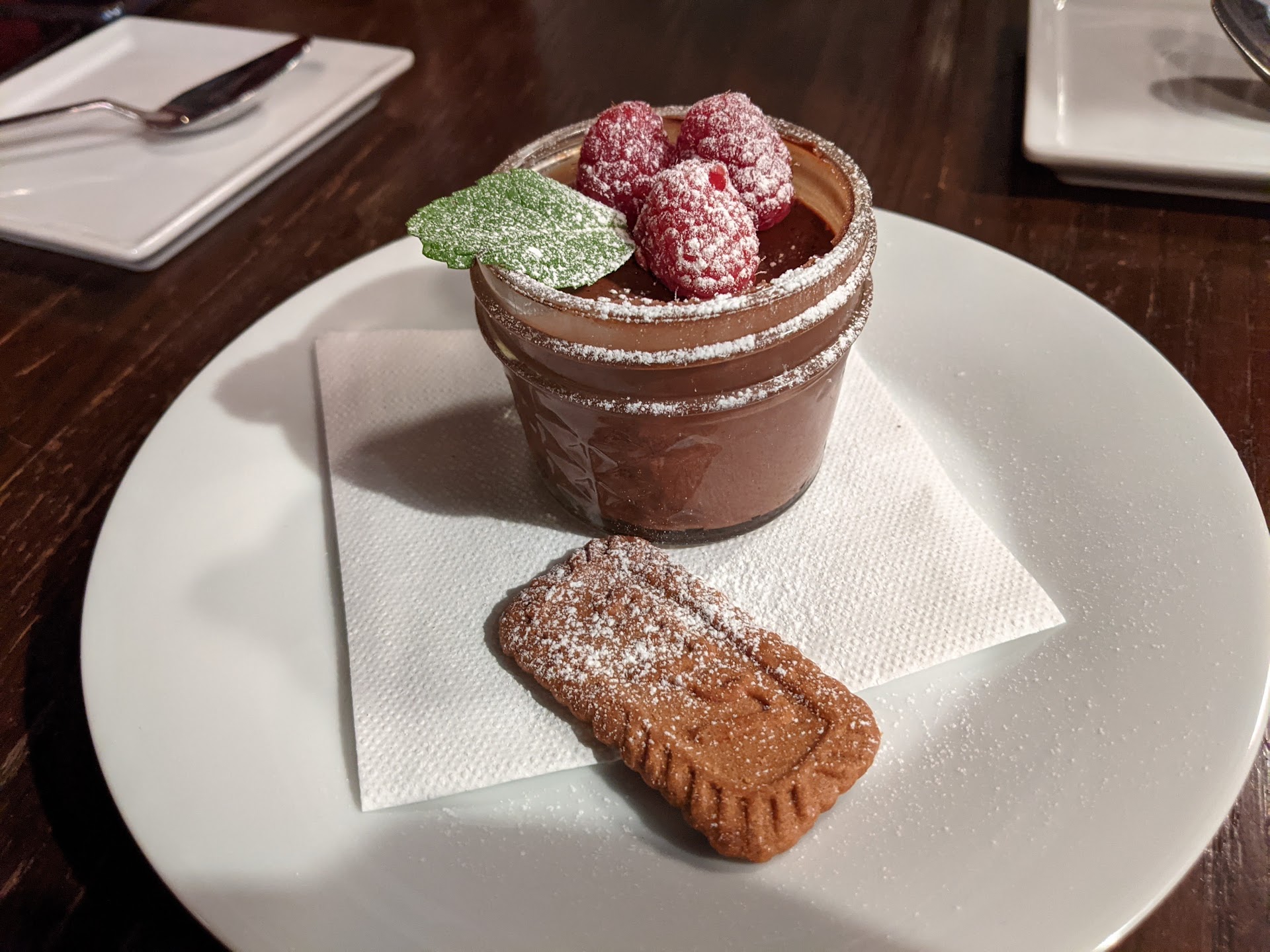 We got both desserts available - the lemon tart and the chocolate mousse/parfait(?). The lemon tart was delicious - lemony to the right amount, not over sweet and thin crust so we could enjoy the lemon more. The chocolate was too chocolate-y for me. My cousin loved it though.
