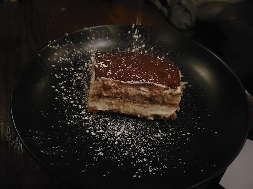 The food was mostly great. For apps, we had the mini lamb rib chop ($15) and the mushroom fegola ($11). It would have been nice to have gotten a bit more than a small piece of lamb, but I understand it's expensive generally. For mains, I had the 8oz flat iron steak ($37) and my gf had the pan seared salmon ($34). I was pleased with the steak, while my gf felt the salmon was a bit plain and didn't live up to the expensive price tag. For dessert, we split the tiramisu ($11), which also happens to be my favorite. It was quite a large piece and we found it tasty.
