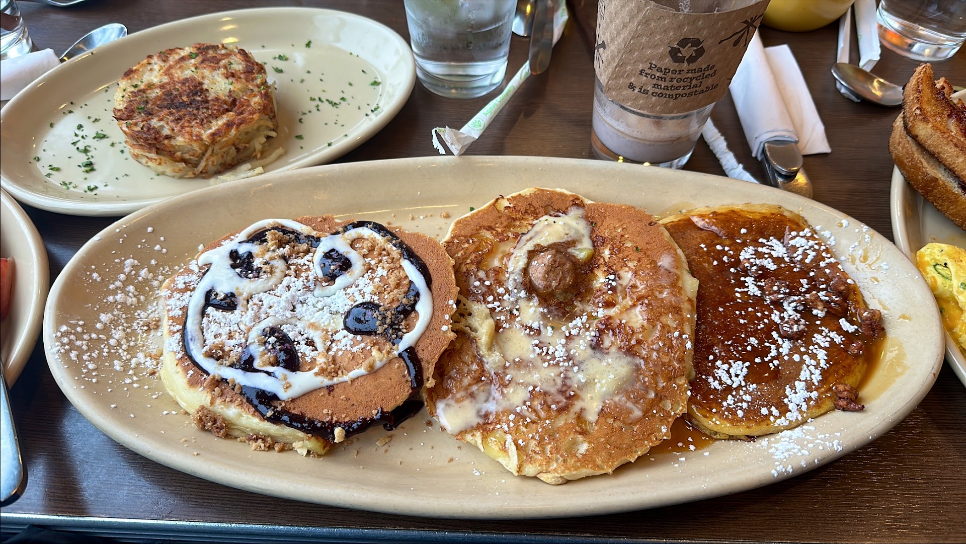 We ordered Eggs benedict III, Biscuits and gravy, espresso, and an iced honey oat milk latte. The espresso is perfect for a dark roast lover, however I found with a bit of cream and sugar, the flavor became more balanced. The iced latte we would highly recommend for its smoothness and taste and worth ordering again.