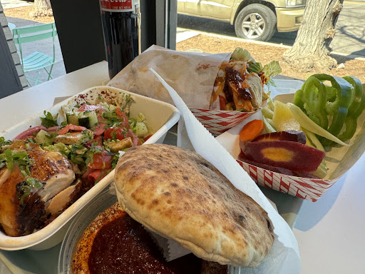 Read moreWOW! What a find! Happened to pop in on their opening night and my wife and i were blown away! We LOVE Safta, so we had high expectations knowing that Chef David came from there - and he did NOT disappoint! The harissa hummus is beautifully flavored but not too spicy, and OMG is it insanely smooth - it absolutely Rivals what he would make at Safta. We had the Rotisserie chicken with a side of Zhoug sauce ... it's a must try! The chicken is bomb. So tender and flavorful. Zhoug sauce? Its green, it is PACKED with flavor and some heat and makes a great addition to anything on the menu... I'll be ordering it every time we visit! The Mezze platter was a great wat to try all of the sides which were top notch. The beet salad was almost creamy, the orzo salad packed SO much flavor, The Baba ganoush was SSSOOO good, too! Everything rocked our palettes in the best ways possible and we cannot wait to come back. Make sure you try a Mediterranean mule when you go - they do have beer, wine and a full liquor license! Prices? I also wanted to mention the staff! The assistant manager made our beverages... he was also SO sweet when our kiddo was upset. On their opening night he took the time to get down on her level and try to make her laugh! Lena at the front counter was so nice and personable as well - all of the staff were helpful, smiley and on top of it! Even Chef David was on top of it - he was working the line all night, rushing back and forth to take care of everything back of the house. Even while doing all of that on opening night, when I went up to ask someone at the front counter for a take out container lid, I saw Chef finding what I had asked someone else for and giving it to her. In the midst of all that was going on, he was even paying attention to the guests at the counter. I see you Chef! KEEP IT UP! I have nothing to complain about, it was AMAZING. JUST GO. Welcome to the neighborhood, I can't wait to have more of this...