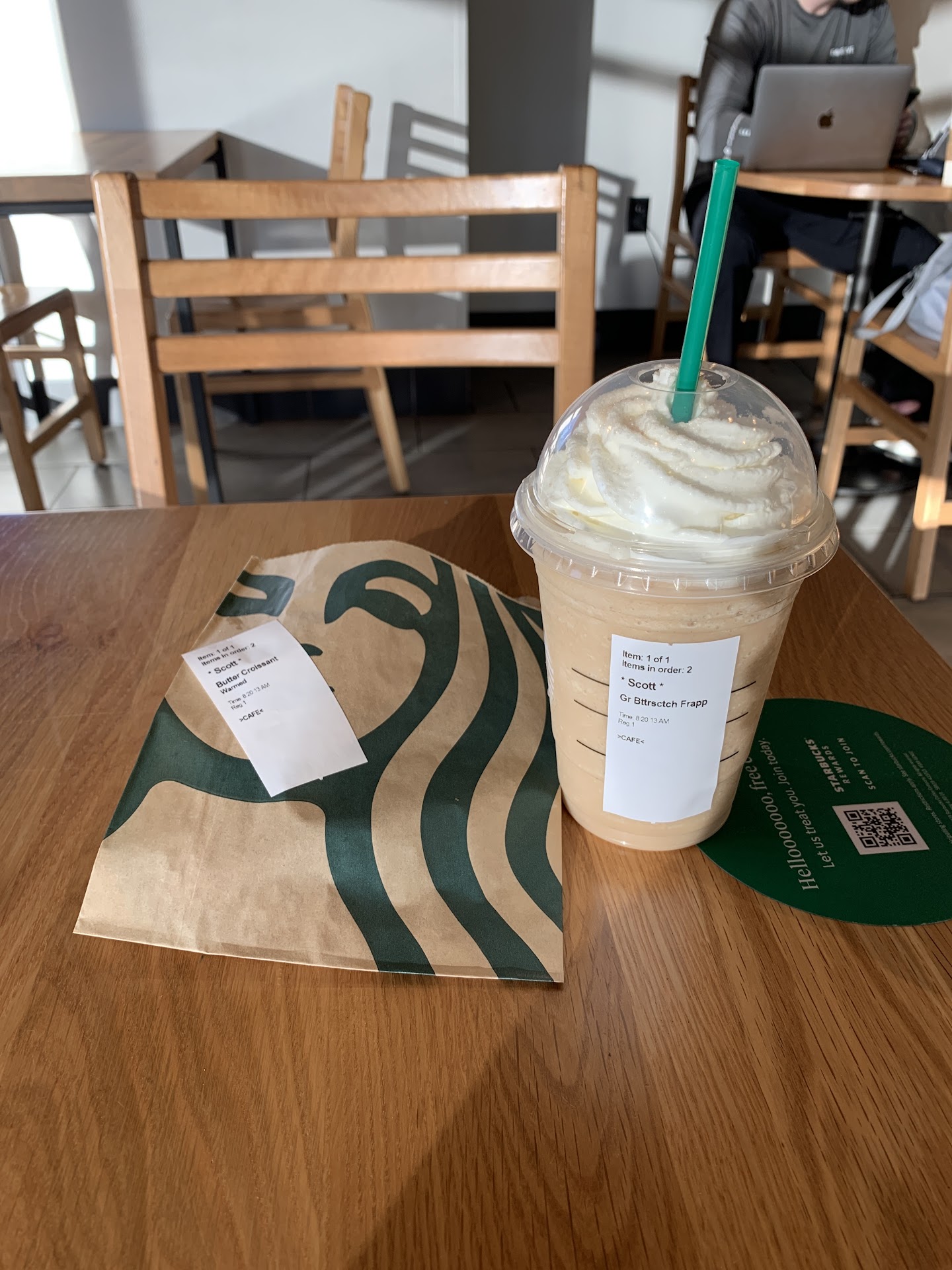 I have been just waiting and watching as others are being made and given. 10 mins go by and no drink of mine is called. Then the barista in the cafe area had QUIETLY asked the cashier what I was waiting for. She said Carmel frapp.
