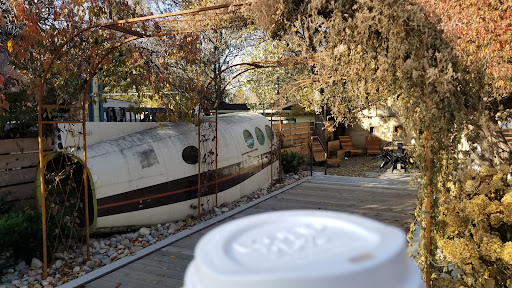 Read moreThe coffee is great - especially like their lattes. This place does not have all the fu-fu syrups and stuff, so you need to actually like the taste of coffee to have it here. Besides good coffee, Steam offers a cozy and unique atmosphere! Inside, they have airplane paintings, a huge mirror, various small group seating arrangements, and several really cool steampunk, vintage-looking (not sure if they are?) light fixtures. Outside in the back patio... they have part of an old plane!!! So neat! Their patio feels very inviting with all of its greenery and trellises - definitely a fun place to hanging out and chat if you are grabbing coffee with friends. If you're hungry too, I would also highly recommend their pastries. I always go for the almond croissants - powdered sugar and almonds on top with almond paste in the middle.. but they're all good. Heads up though, they do not have a way to warm them up - so if you can't eat a cold ham & cheese croissant, pick...