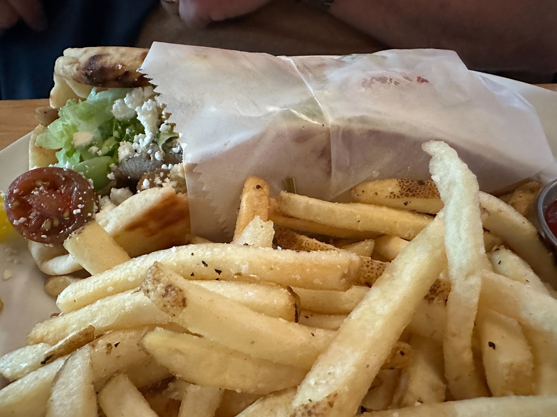 From the moment we walked in, the warmth and energy of the place were palpable. It set the stage for what was to become an evening filled with culinary delights. Our culinary adventure began with the Lamb Gyro, a dish that masterfully balanced rich flavors with a delicate finesse. The lamb was succulent and perfectly seasoned, wrapped in a soft, warm pita that was just the right touch of hearty and light.